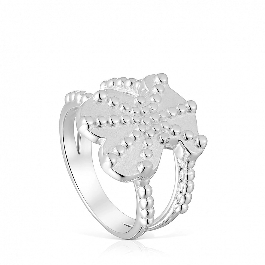 Кольцо TOUS Grain из серебра 925 пробы с мотивом мишки. Размер мишки: 15 мм. Ширина кольца: 15 мм. Толщина кольца: 1,75 мм.