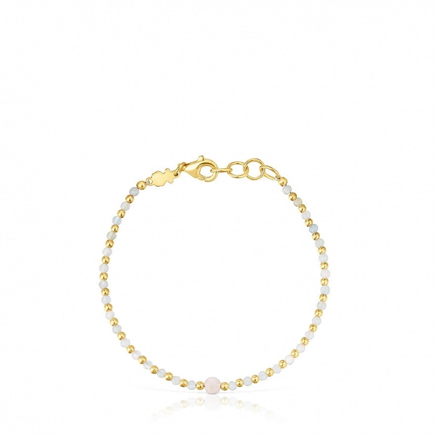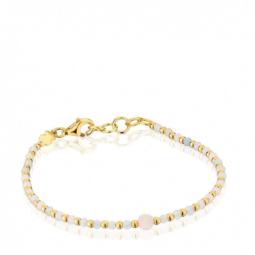 Браслет TOUS Basic Colors с покрытием из розового золота 18 карат поверх серебра, с граненым бериллием разных оттенков и морганитом в качестве центрального драгоценного камня. Размер камня: ограненные шарики 2 мм, центральный камень 4,5 мм. Длина браслета: 17,5 см. Застежка-лобстер. Изделие изготовлено из стерлингового серебра с золотым покрытием от 18 до 23 карат и толщиной 3 микрона. Это качество гарантирует большую долговечность украшения.