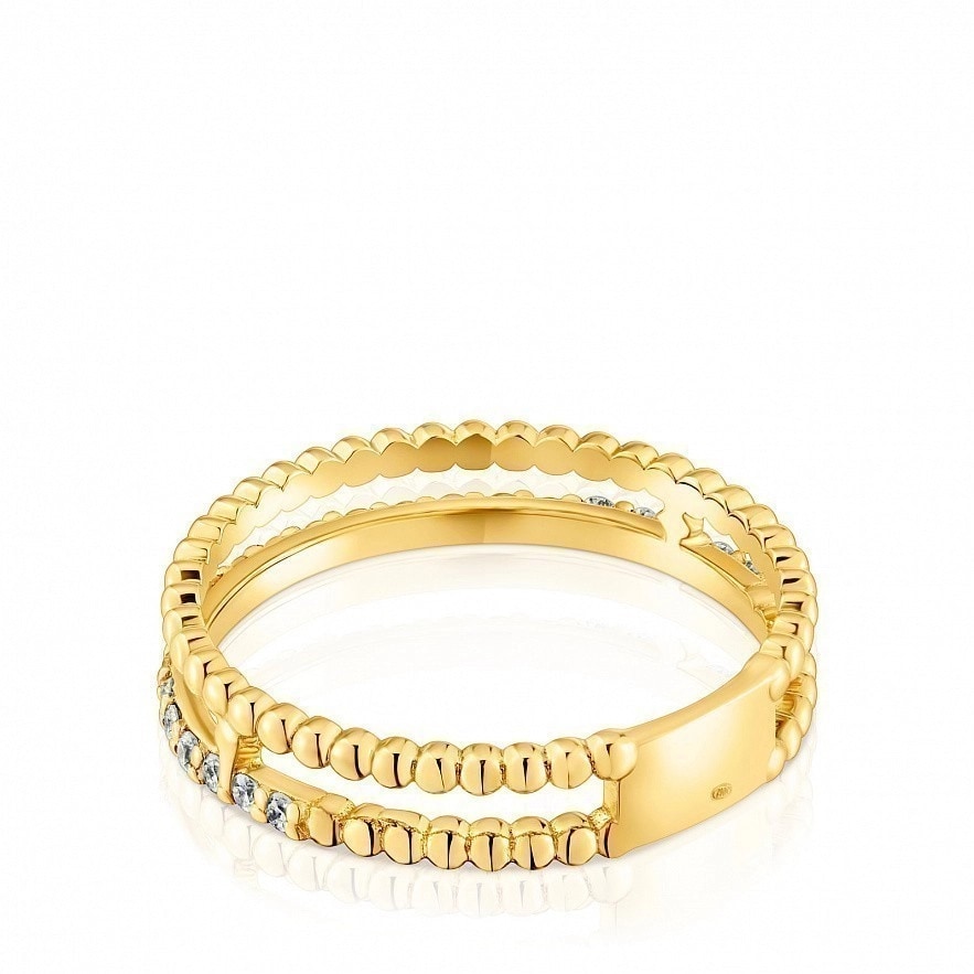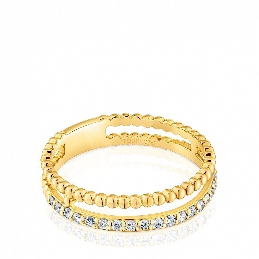 Двойное кольцо TOUS Les Classiques из желтого золота 18 карат с бриллиантами классической огранки 0,21 карата. Качество бриллиантов: H/SI.