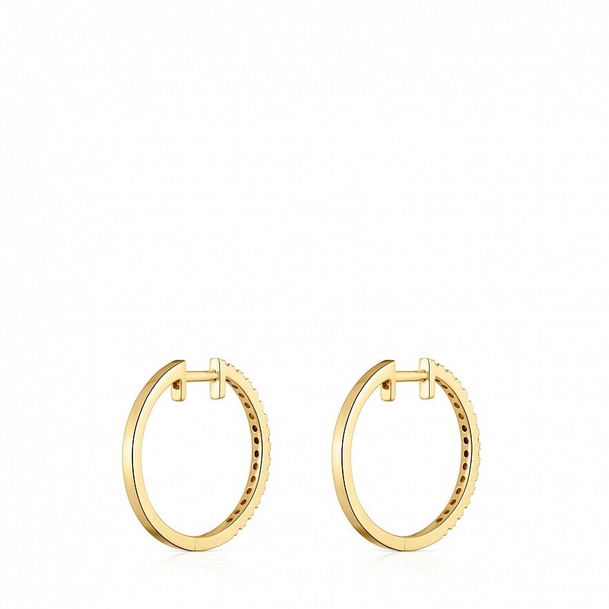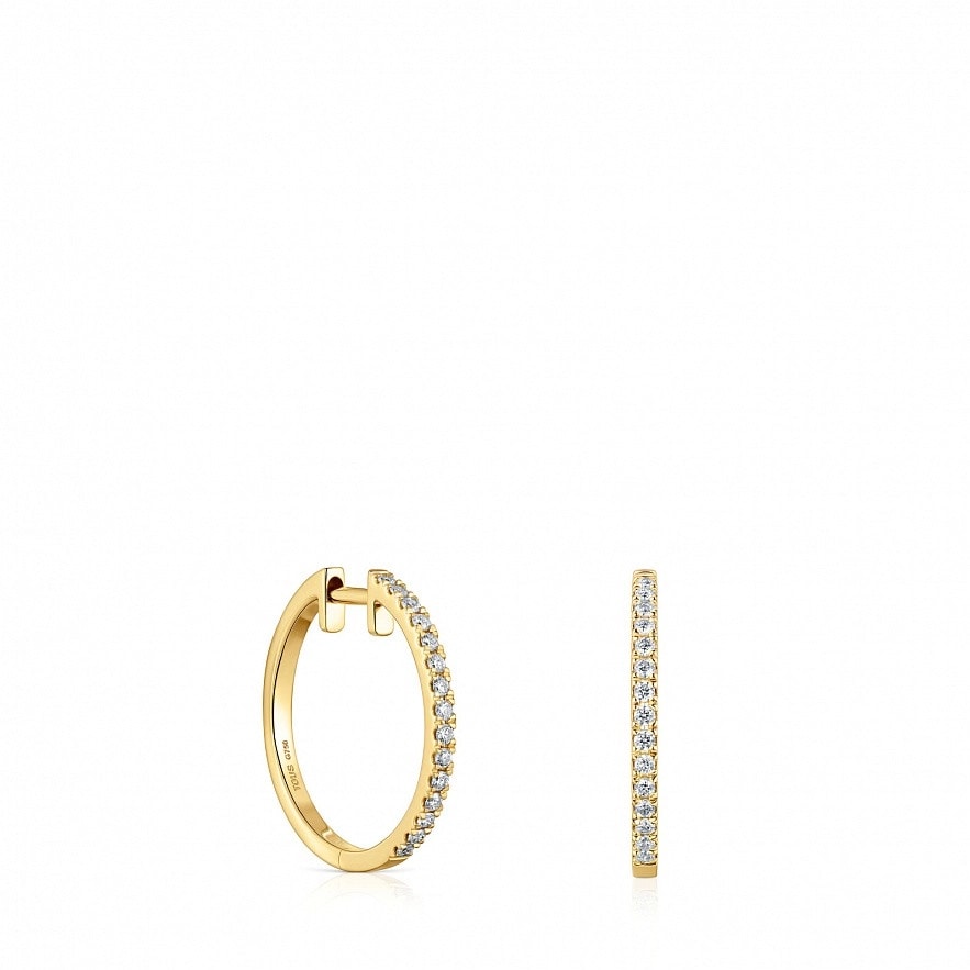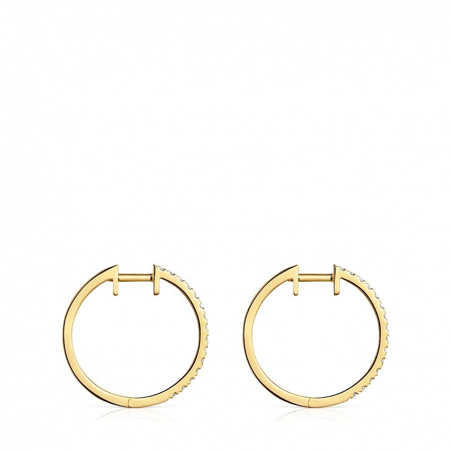 Серьги-кольца TOUS Les Classiques из желтого золота 18 карат с бриллиантами классической огранки 0,16 карата. Качество бриллианта: GH/SI. Размер серьги: 14,5 мм.