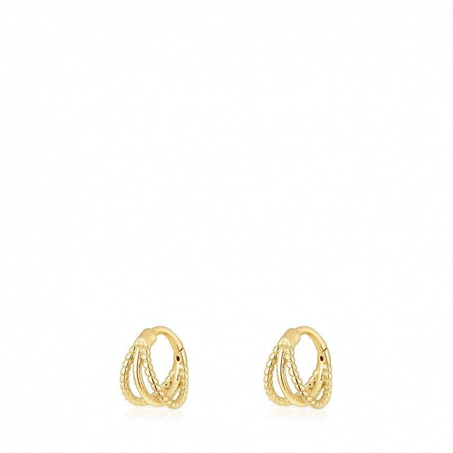 Серьги TOUS Basics с тройным кольцом из 18-каратного желтого золота. Размер серег: 7 мм.