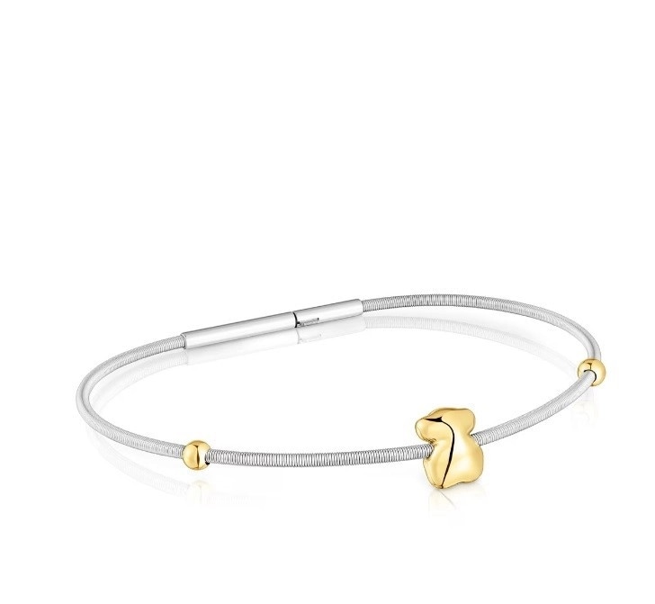 Браслет TOUS Mesh Tube с 18-каратным желтым золотом, сеткой и застежкой из нержавеющей стали. Длина браслета: 17,5 см. Двойная застежка-зажим.