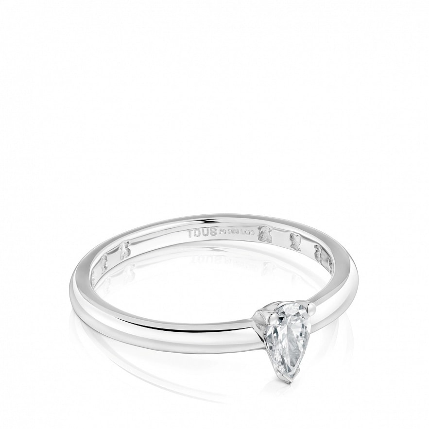 Кольцо TOUS Les Classiques LGD из платины 950 пробы и бриллиантом 0,25 карата грушевидной огранки, выращенным в лаборатории, в оправе. Толщина кольца: 3 мм. Качество бриллианта: G/VS. Примечание: Изделие создано с бриллиантами, выращенными в лаборатории.
