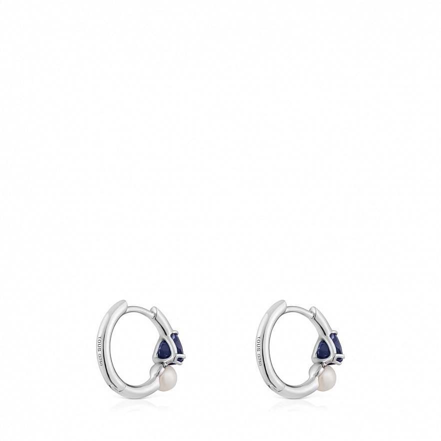 Серьги-кольца TOUS Ivette из белого золота 18 карат с иолитом и культивированной пресноводной жемчужиной. Размер драгоценного камня: 4 мм. Размер культивированного жемчуга: 3 мм. Размер серьги: 9 мм.