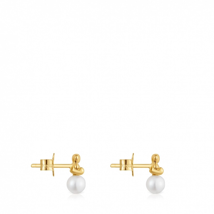 Серьги TOUS Bold Bear из желтого золота 18 карат с мишкой и культивированным пресноводным жемчугом. Размер культивированного жемчуга: 4,5 мм. Размер мотива: 5 мм.