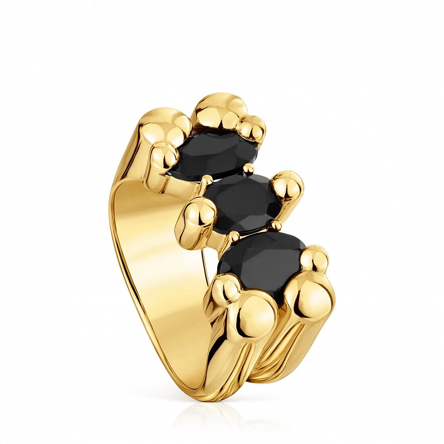 Кольцо TOUS Color Bear из серебра 925 пробы с покрытием Vermeil и ониксом овальной огранки в форме медведя. Размер мотива: 22,15 мм.