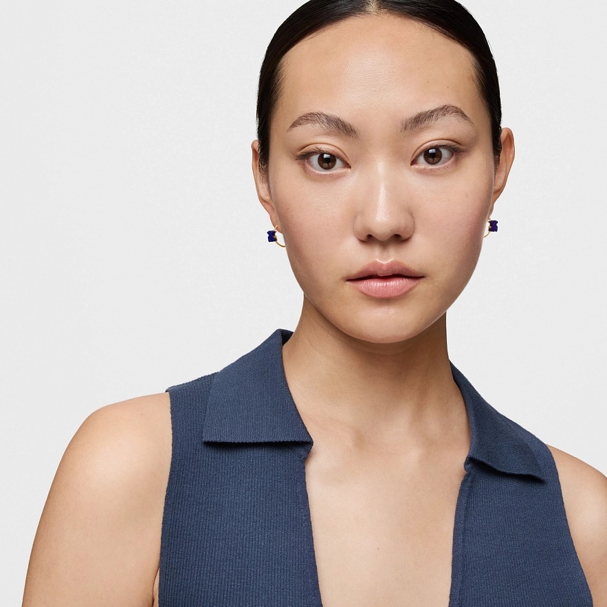 Серьги-кольца TOUS 1950 из желтого золота 18 карат с ограненным лазуритом в форме мишки. Размер мишки: 8 мм. Размер сережек: 15 мм.