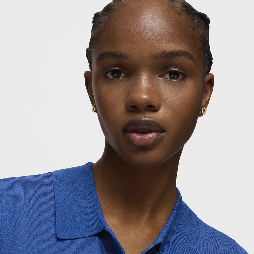 Серьги TOUS Sugar Party из серебра 925 пробы с покрытием Vermeil и круглым ограненным иолитом в центре. Размер драгоценного камня: 4 мм. Размер серьги: 10 мм.