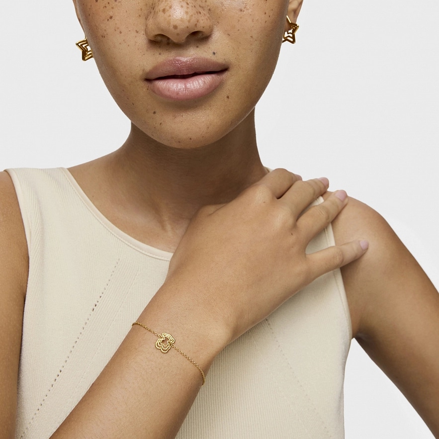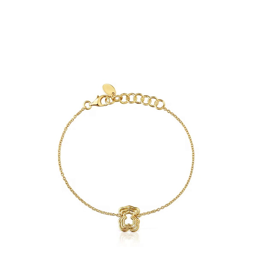 Браслет TOUS Bickie из серебра 925 пробы с покрытием Vermeil и мотивом тройного мишки. Размер мишки: 11 мм. Длина браслета: 17,5 см. Застежка лобстер.