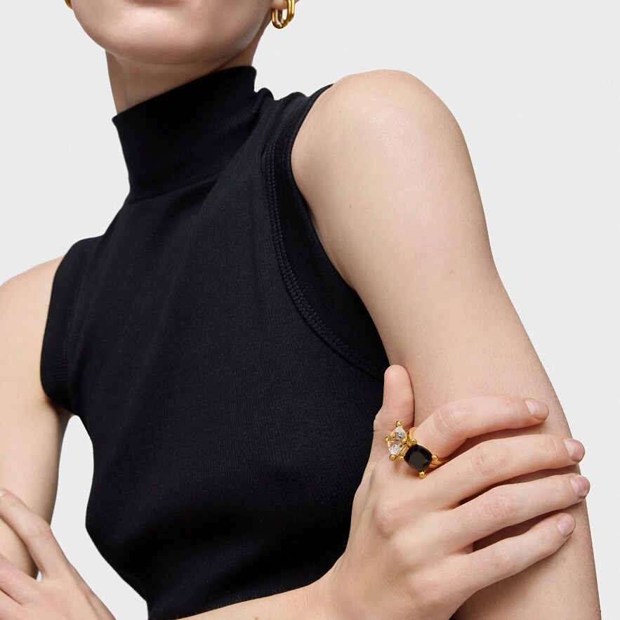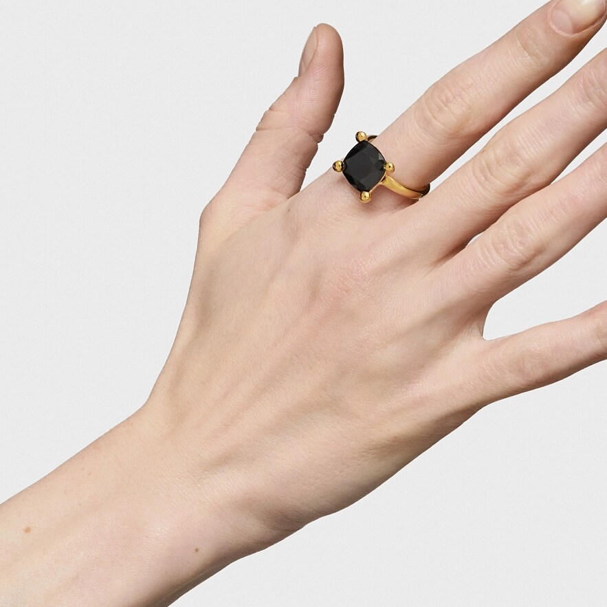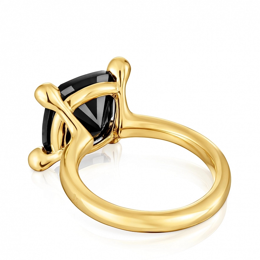 Кольцо TOUS Color Black из серебра 925 пробы с покрытием Vermeil и ограненным ониксом в форме квадрата. Размер камня: 11 мм.