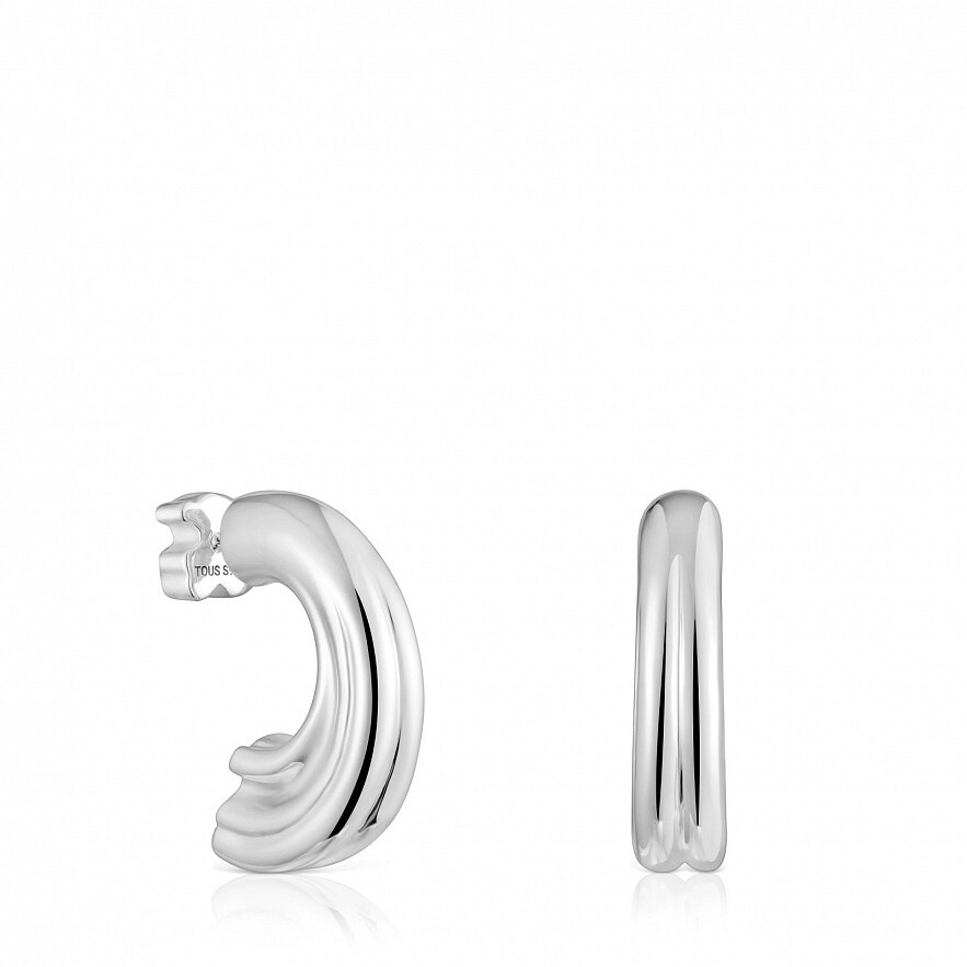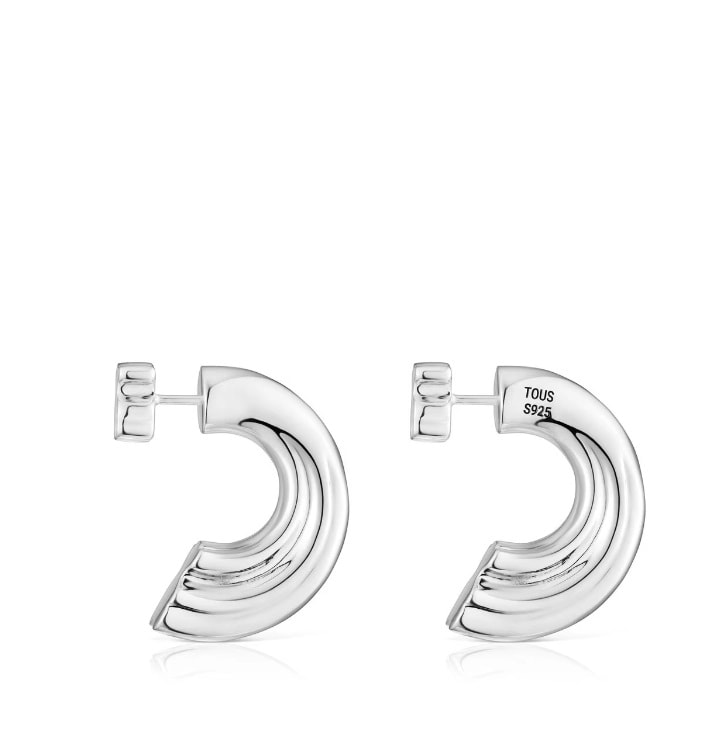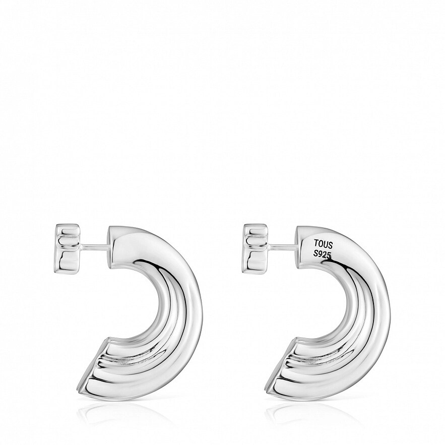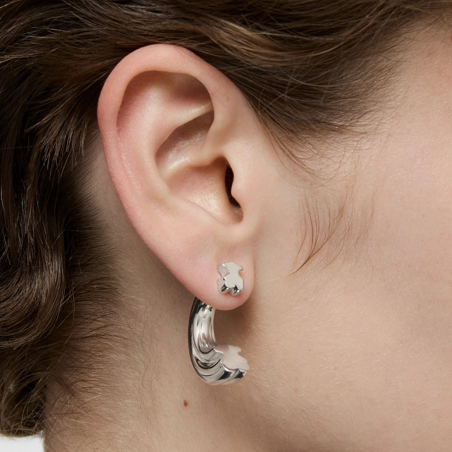 Серьги-кольца TOUS 1950 из серебра 925 пробы с внутренним мотивом в виде мишки. Размер сережек: 25 мм.