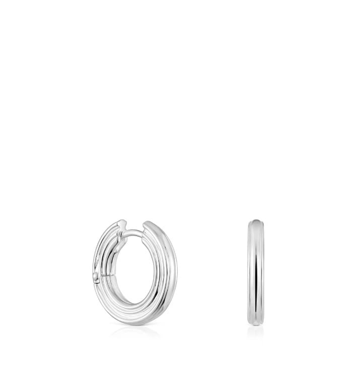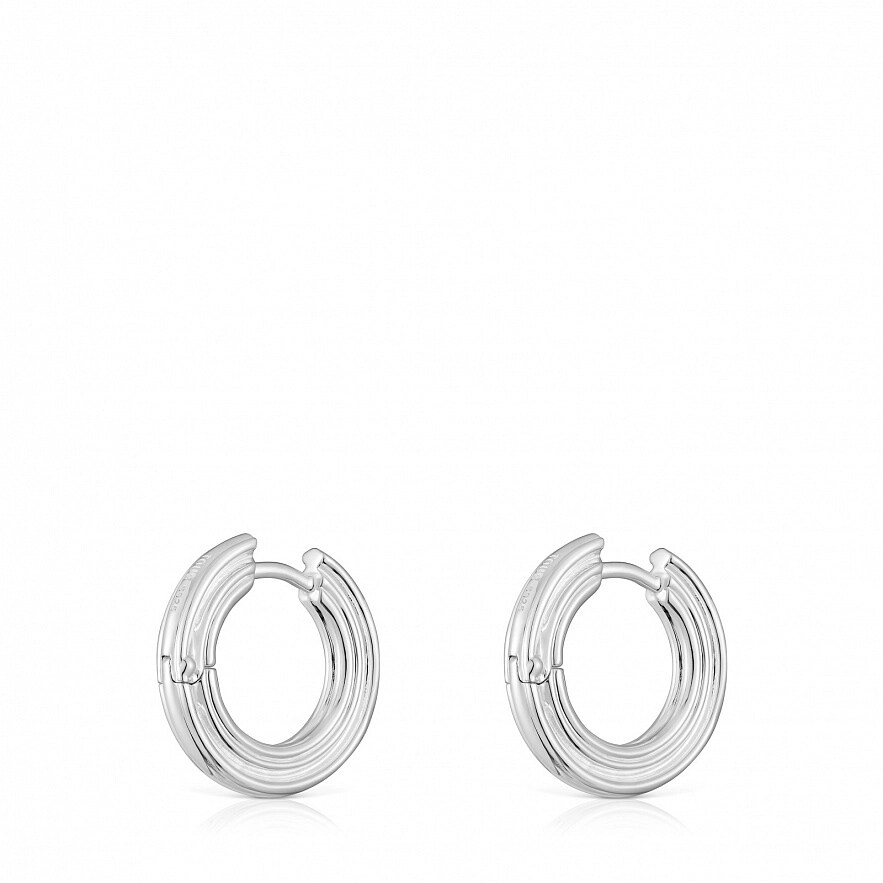Серьги-кольца TOUS 1950 из серебра 925 пробы с внутренним мотивом в виде мишки. Размер сережек: 16 мм.