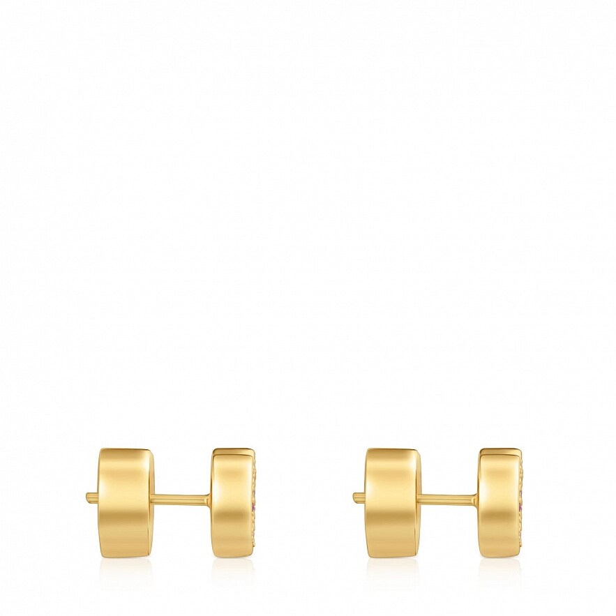 Серьги TOUS 1950 в форме сердца из серебра 925 пробы с покрытием Vermeil , и круглыми ограненными родолитами. Размер драгоценных камней: 1 мм. Размер сережек: 9 мм.