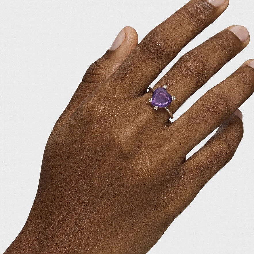 Кольцо TOUS Color Pills из серебра 925 пробы с ограненным аметистом в форме сердца. Размер камня: 9,8 х 10,2 мм. Высота кулона: 4,8 мм. Толщина кольца: 1,4 мм.