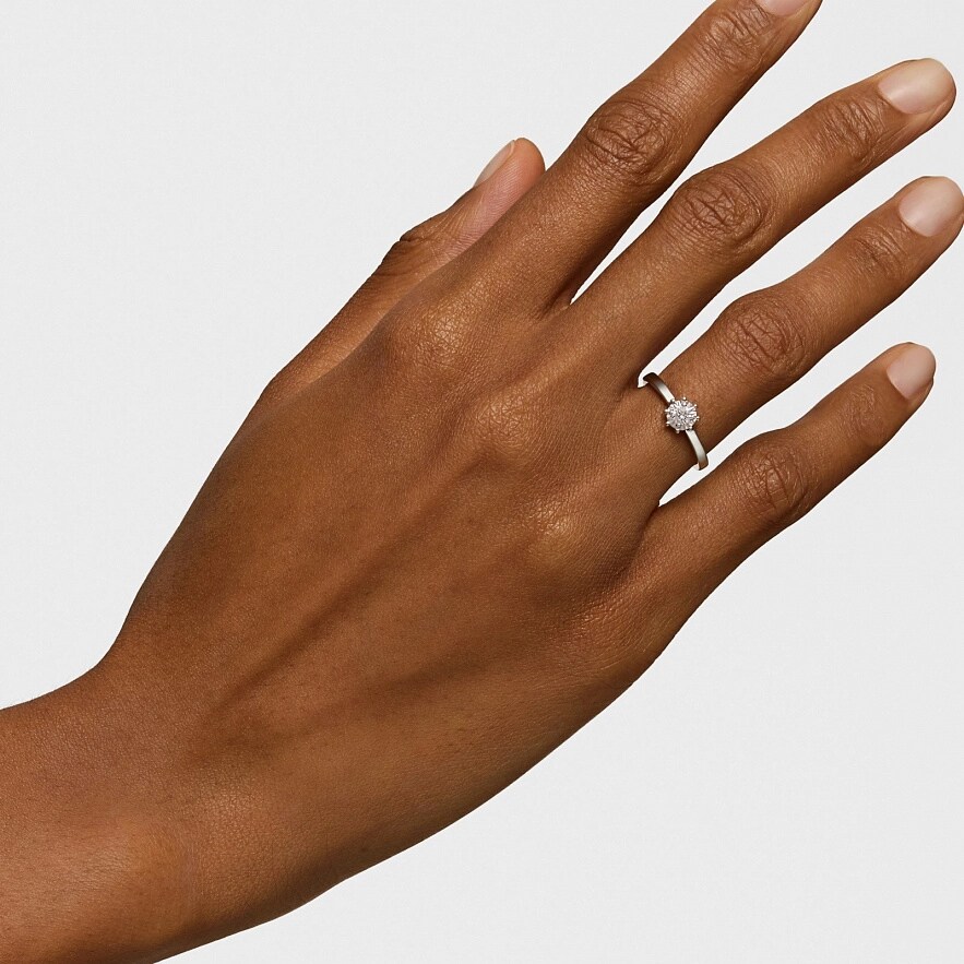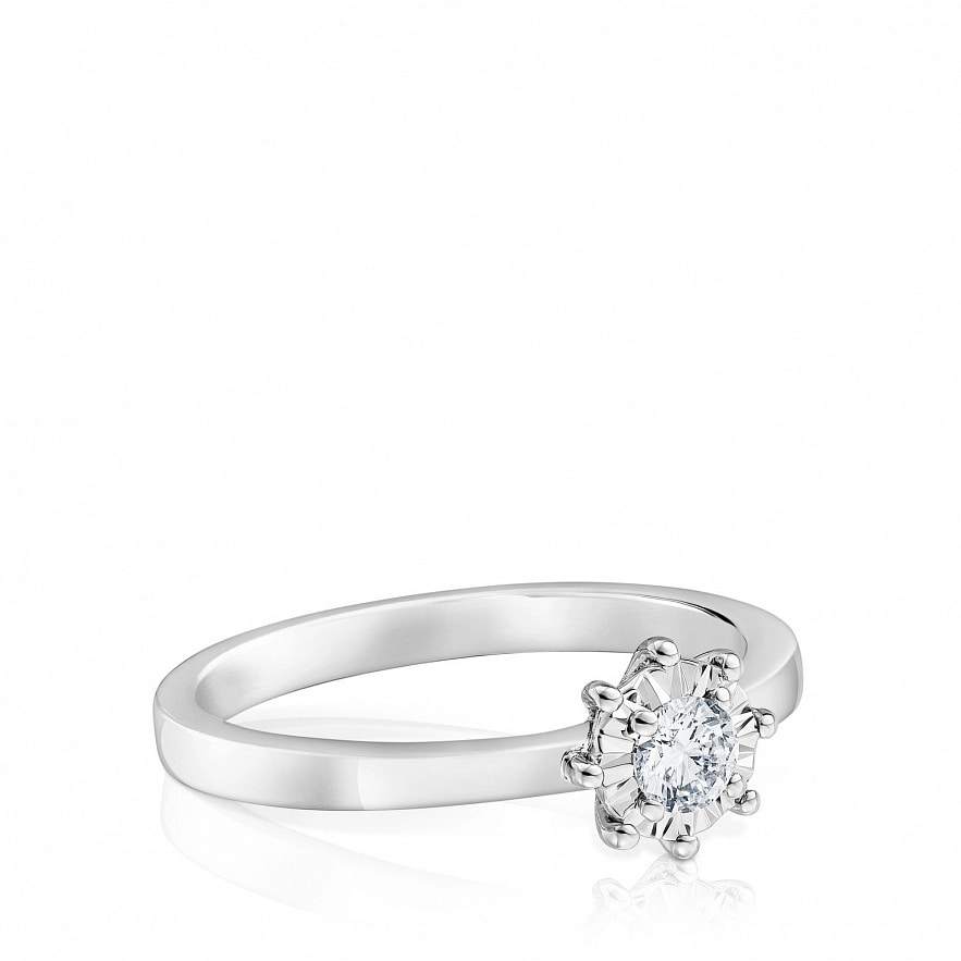 Кольцо TOUS Les Classiques из белого золота 18 карат с бриллиантовой вставкой 0.15 карата H/SI бриллиантовой огранки. Размер розетки: 4.5 мм. Техника изготовления: Микрофьюжн.
