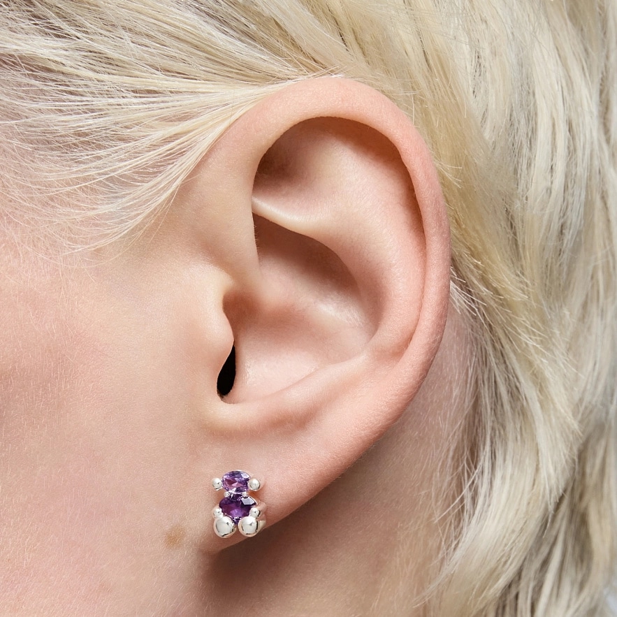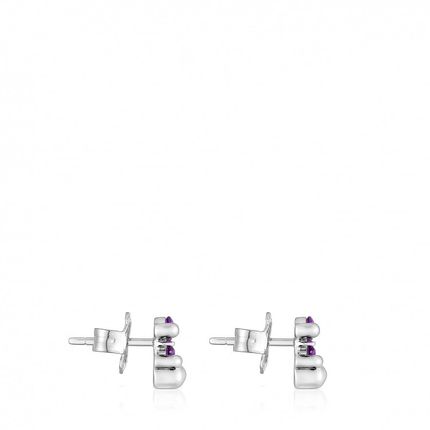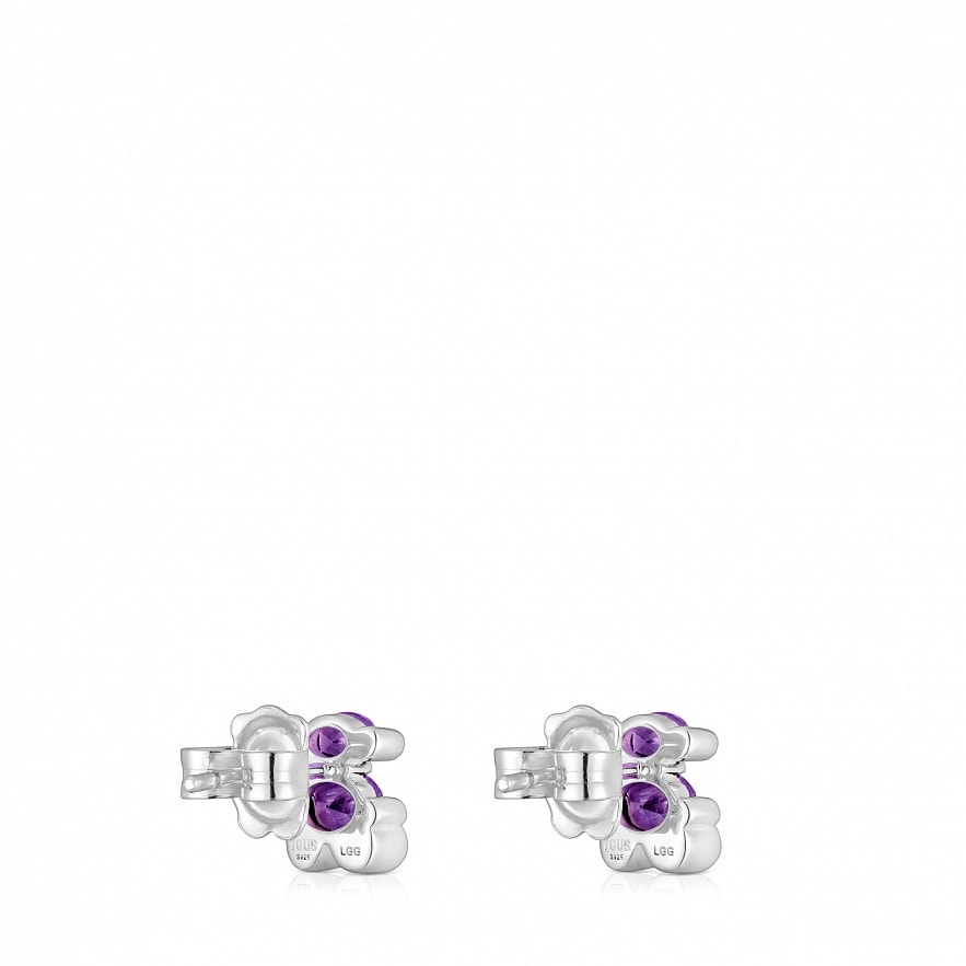 Серьги TOUS Color Bear LGG из серебра 925 пробы с синтетическим сапфиром сиреневого цвета, выращенным в лаборатории, в форме мишки. Размер сережек: 8 мм. Примечание: Изделие создано с использованием лабораторно выращенных драгоценных камней.