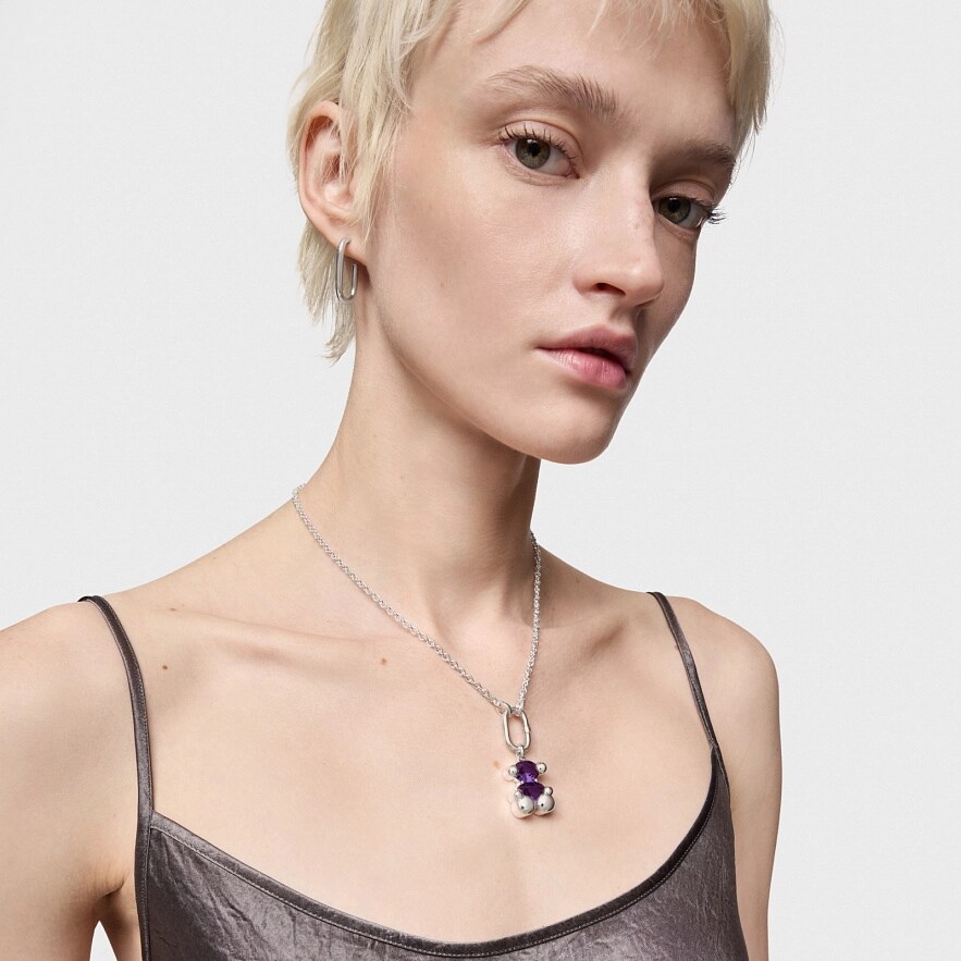 Кулон TOUS Color Bear LGG из серебра 925 пробы с синтетическим сапфиром сиреневого цвета овальной огранки в форме мишки, выращенного в лаборатории. Размер мотива: 23 мм. Это изделие не включает цепочку. Примечание: Изделие создано с использованием лабораторно выращенных драгоценных камней.