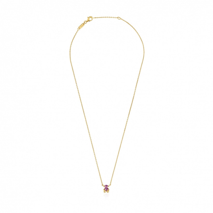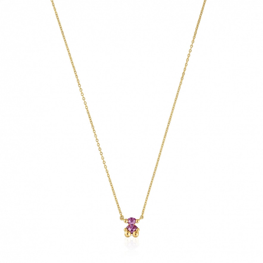 Колье TOUS Color Bear LGG из серебра 925 пробы с покрытием Vermeil и ограненным сапфиром сиреневого цвета, выращенным в лаборатории, в форме мишки. Размер мотива: 8 мм. Длина колье: 45 см. Застежка-лобстер. Примечание: Изделие создано с использованием лабораторно выращенных драгоценных камней.