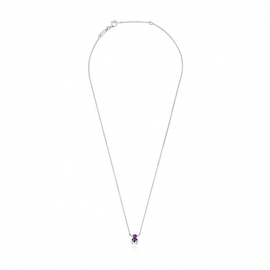 Колье TOUS Color Bear LGG из серебра 925 пробы с синтетическими сапфирами сиреневого цвета, выращенными в лаборатории, в форме мишки. Размер мотива: 8 мм. Длина ожерелья: 45 см. Застежка- лобстер.