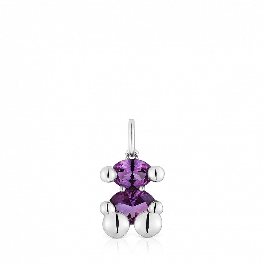 Кулон TOUS Color Bear LGG из серебра 925 пробы с синтетическим сапфиром сиреневого цвета овальной огранки в форме мишки, выращенного в лаборатории. Размер мотива: 14 мм. В комплект не входит цепочка. Примечание: Изделие создано с использованием лабораторно выращенных драгоценных камней.