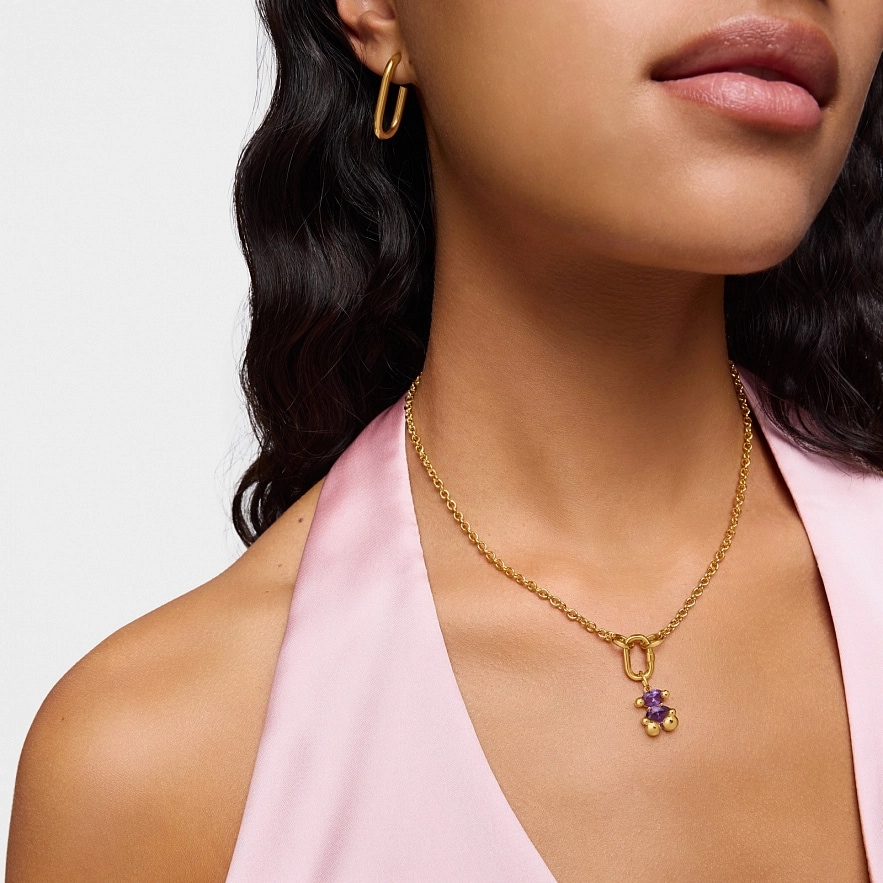 Кулон TOUS Color Bear LGG из серебра 925 пробы с покрытием Vermeil и овальным сапфиром сиреневого цвета в форме мишки, выращенным в лаборатории. Размер кулона: 13 мм. Это изделие не включает цепочку. Примечание: Изделие создано с использованием лабораторно выращенных драгоценных камней.