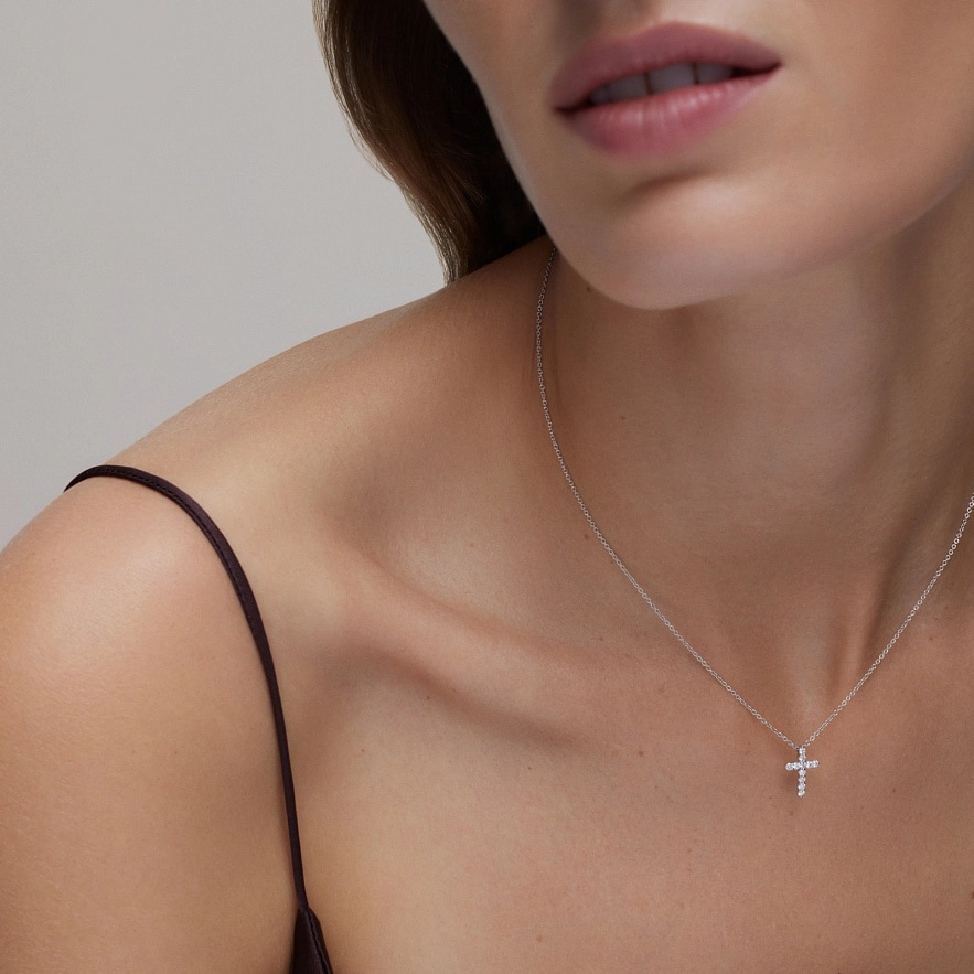Колье TOUS Atelier из белого золота 18 карат с бриллиантами с кулоном крестиком. Общий вес бриллиантов: 0.23 карат. Качество бриллиантов: H/SI. Длина колье: 50 см. Застежка-бабочка.