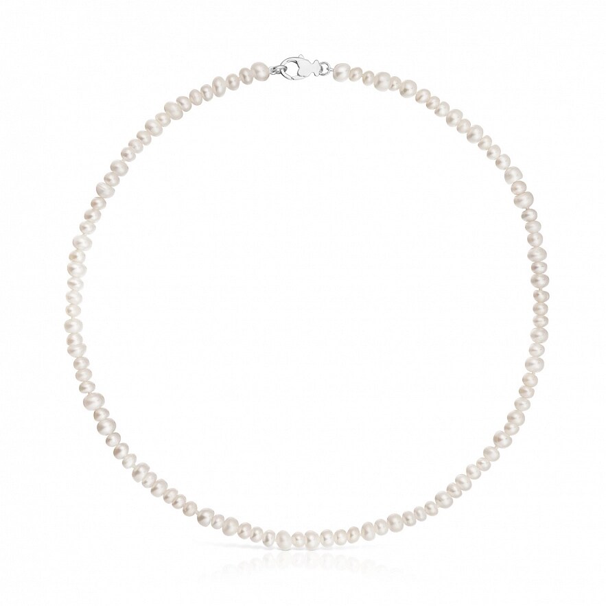 Колье TOUS Basic из серебра 925 пробы с культивированным пресноводным жемчугом. Размер культивированного жемчуга: 4,5-6 мм. Длина колье: 45 см. Застежка-лобстер с шармом мишки.
