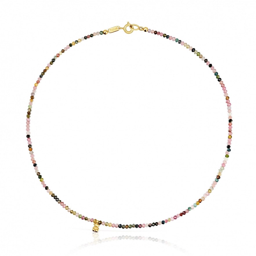 Колье TOUS Bold Bear из серебра 925 пробы с покрытием Vermeil и шариками размером 2 - 2,5 мм с турмалином разных оттенков. Длина колье: 40 см. Застежка-лобстер.