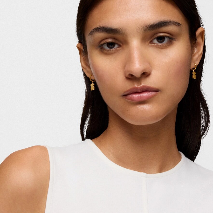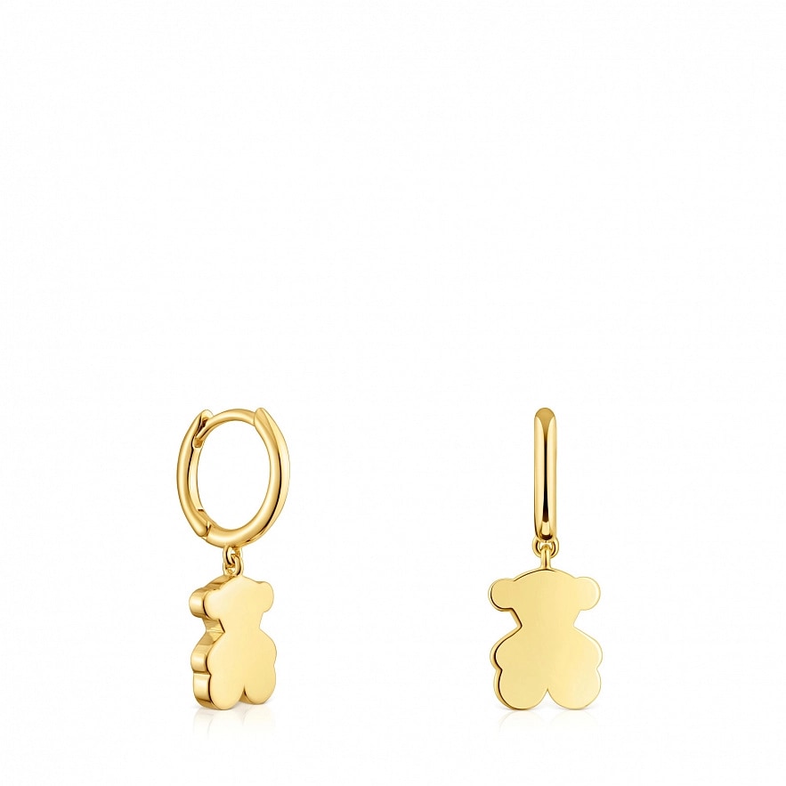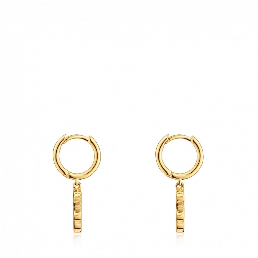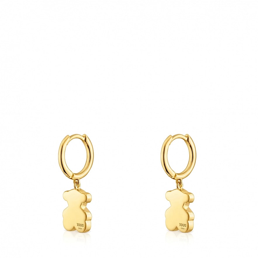 Серьги-кольца TOUS Sweet Dolls из серебра 925 пробы с покрытием Vermeil с мотивом в виде мишки. Размер сережек: 10 мм. Размер сережек: 8 мм.