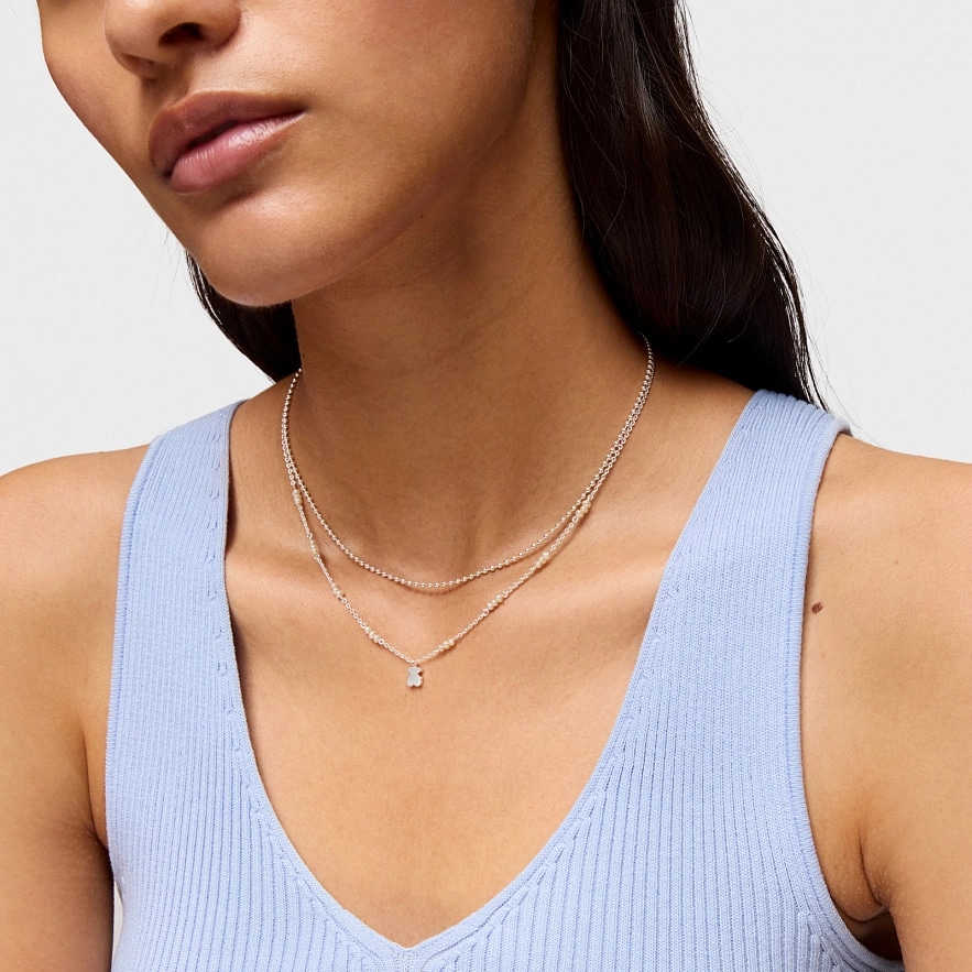 Колье TOUS Sweet Dolls из серебра 925 пробы с культивируемым пресноводным жемчугом и мишкой. Размер мишки: 6 мм. Размер культивированного жемчуга: 2 мм. Длина колье: 42 см. Застежка-лобстер.