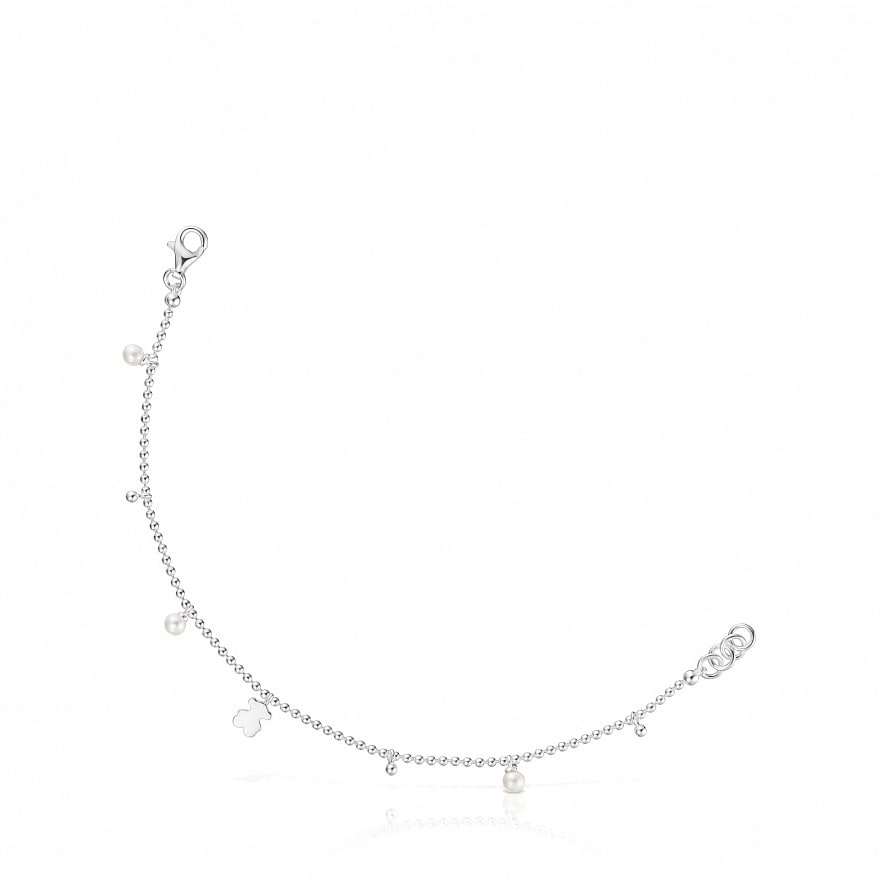 Браслет TOUS Sweet Dolls из серебра 925 пробы, подвески из культивированного пресноводного жемчуга и брелок-мишка. Размер мишки: 6 мм. Размер культивированного жемчуга: 3 мм. Длина браслета: 17 см. Застежка-лобстер.