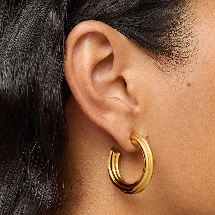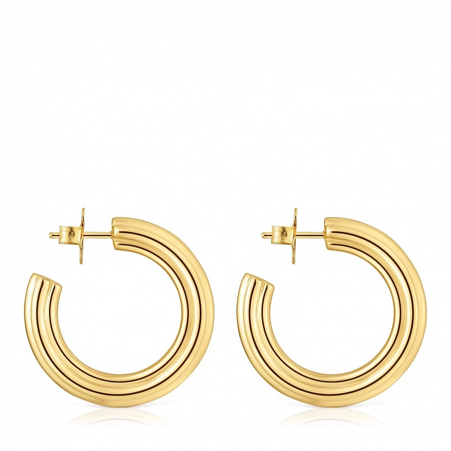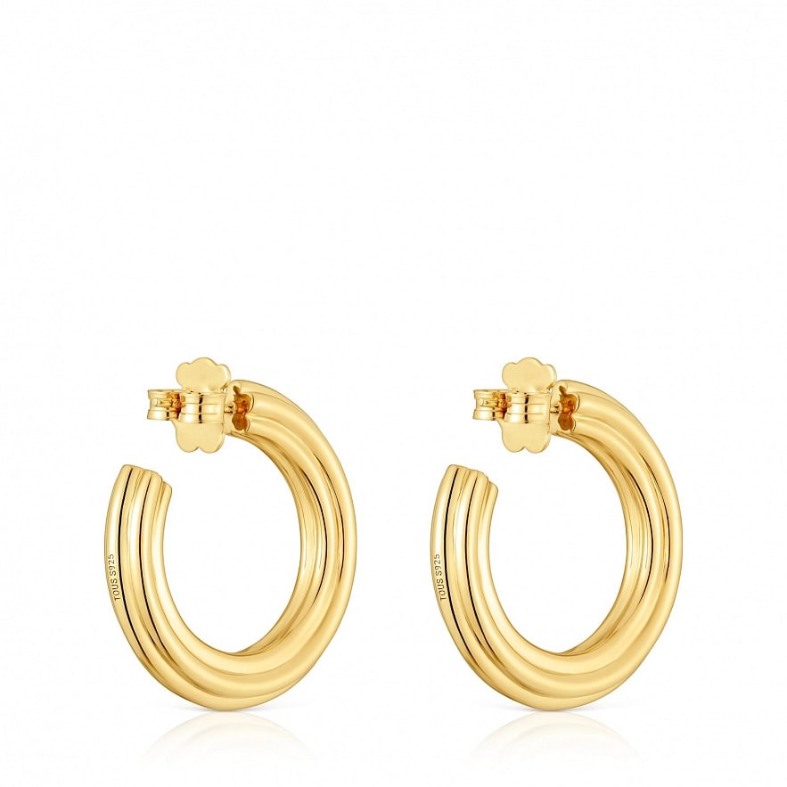 Серьги-кольца TOUS 1950 из серебра 925 пробы с покрытием Vermeil , с внутренним мотивом в виде цветка. Размер сережек: 30 мм.