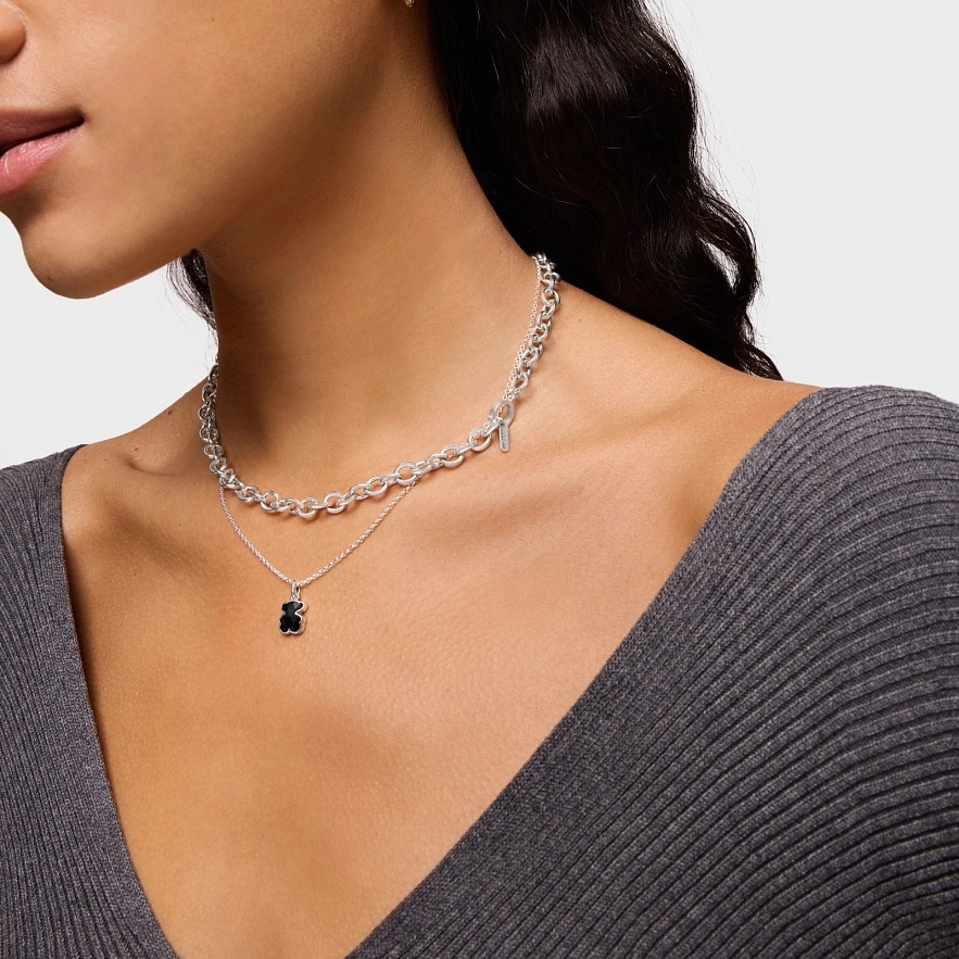 Колье TOUS Icon Color из серебра 925 пробы с мотивом мишки из ограненного оникса. Размер мишки: 6 мм. Длина колье: 45 см. Застежка-лобстер.