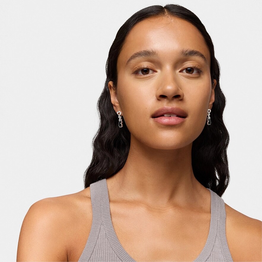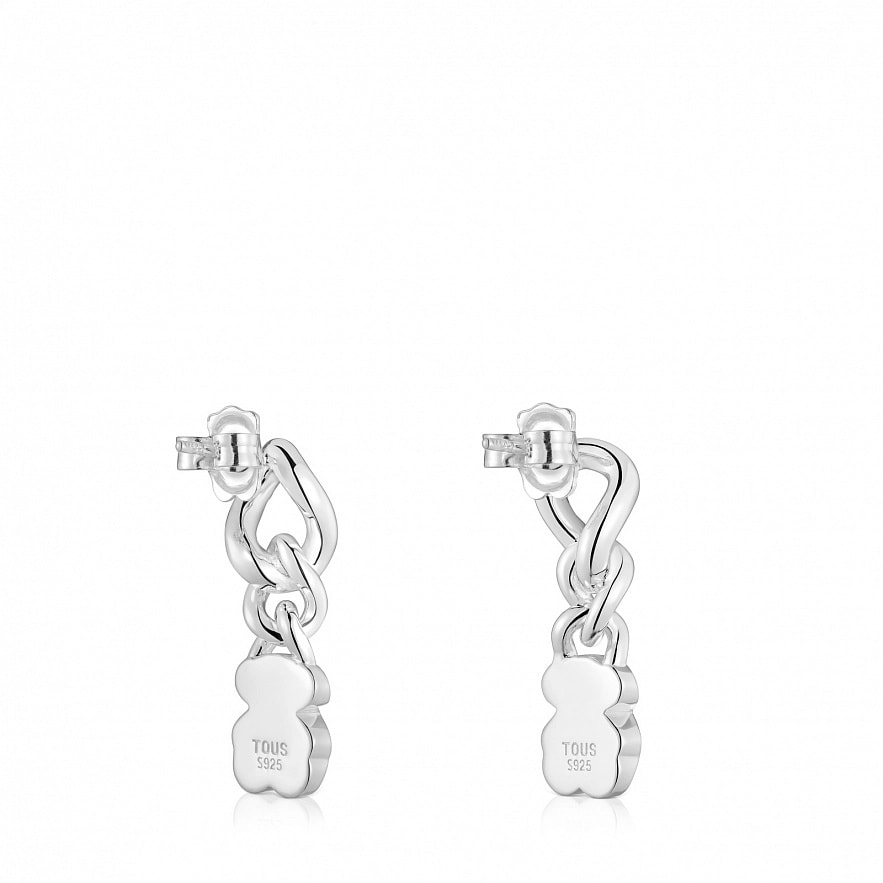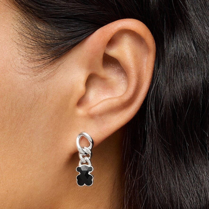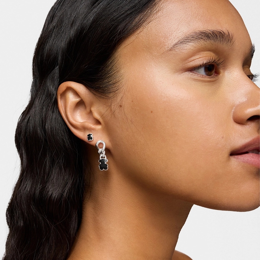 Серьги TOUS Icon Color из серебра 925 пробы с ограненным ониксом в форме мишки. Размер камня: 9 мм. Длина серьги: 27 мм.