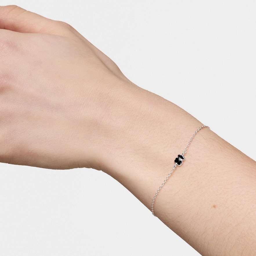 Браслет TOUS Icon Color из серебра 925 пробы с мотивом мишки из ограненного оникса. Размер мотива: 6 мм. Длина браслета: 17,5 см. Застежка лобстер.