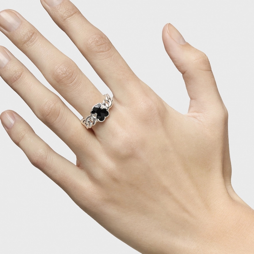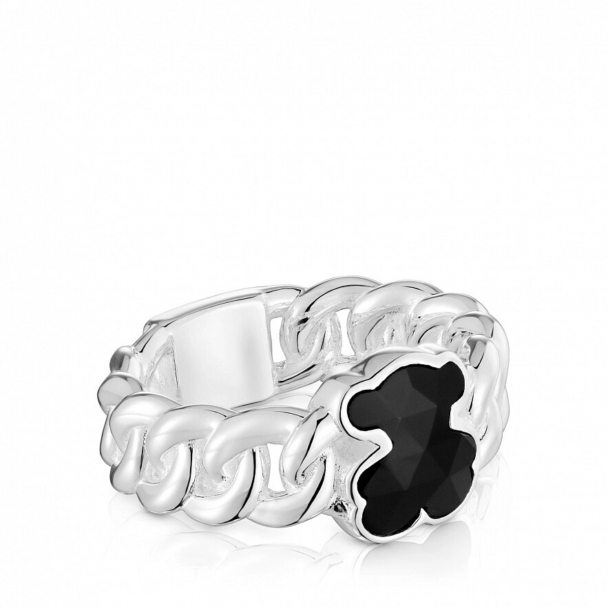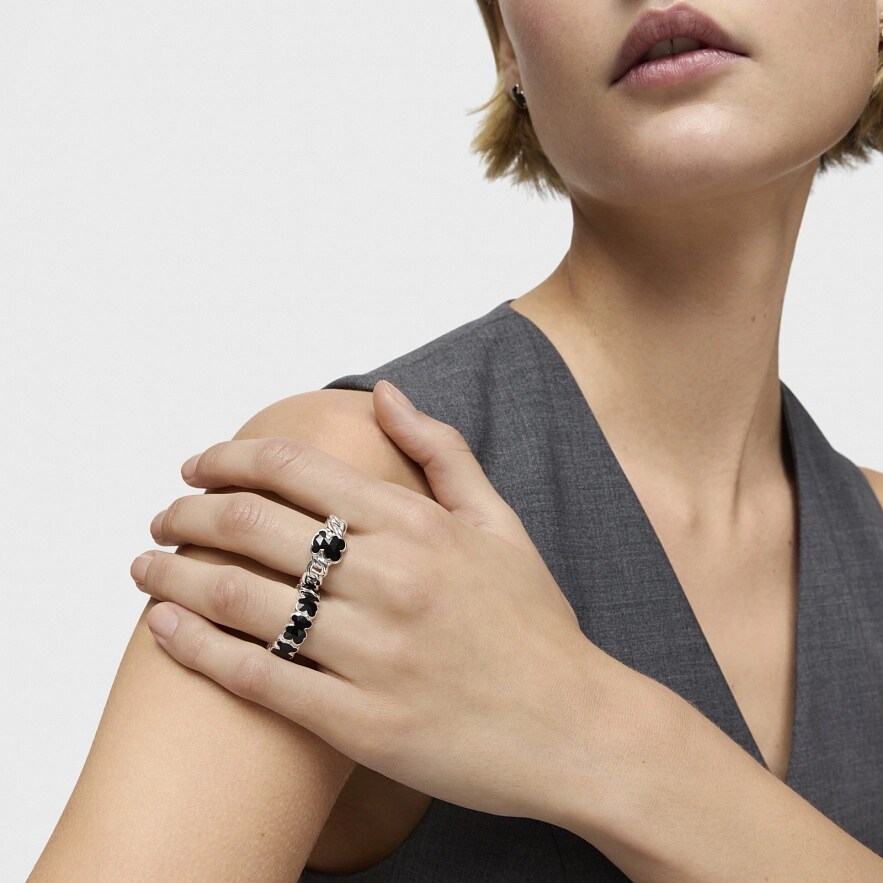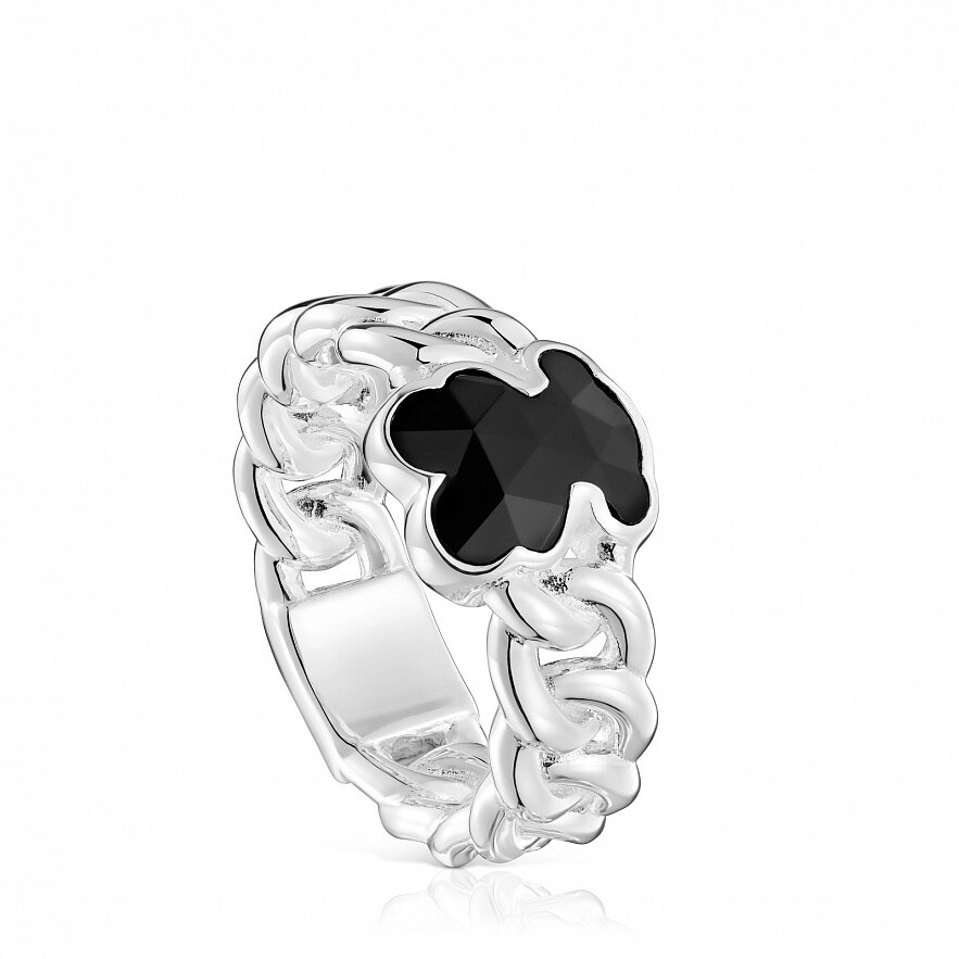Кольцо TOUS Icon Color из серебра 925 пробы и мотивом мишки с ограненным ониксом. Размер мишки: 10 мм. Толщина кольца: 8 мм.