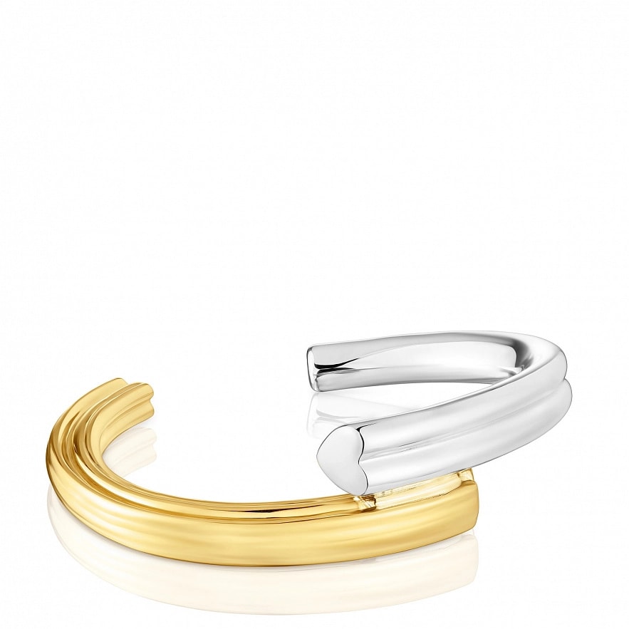 Широкий браслет TOUS 1950 из серебра 925 пробы с покрытием Vermeil с внутренним мотивом в форме медведя из серебра и внутренним мотивом в форме сердца. Ширина мотивов: 9 мм.