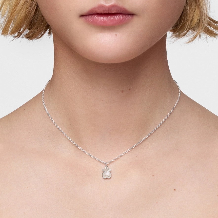 Колье TOUS Icon Color из серебра 925 пробы с мотивом мишки из граненого перламутра. Размер мишки: 10 мм. Длина колье: 45 см. Застежка лобстер.