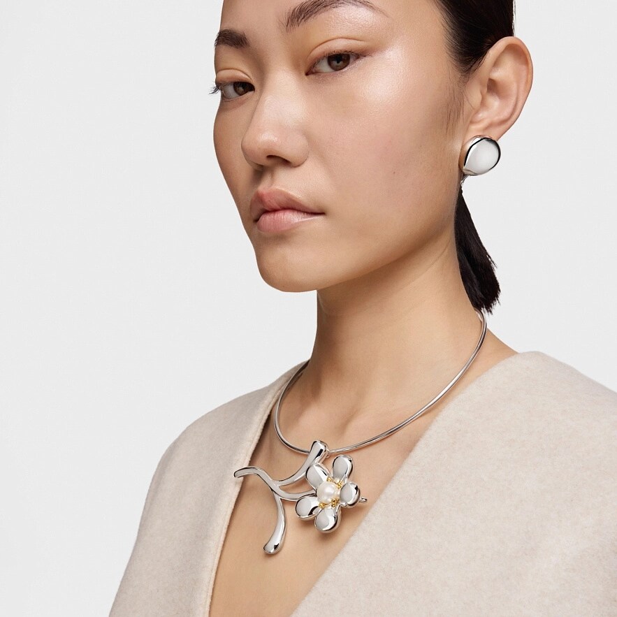 Брошь TOUS Daisy из серебра 925 пробы, покрытая 18-каратным золотом, с цветочным мотивом и культивированной пресноводной жемчужиной. Размер броши: 100 мм.