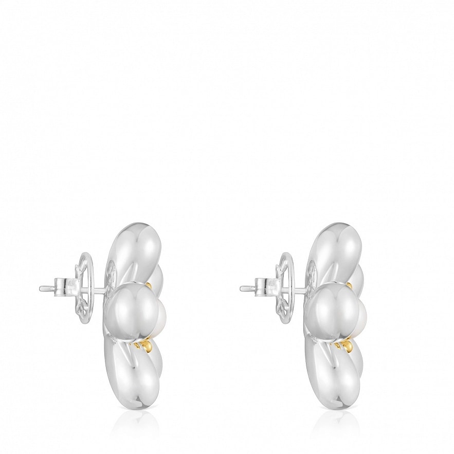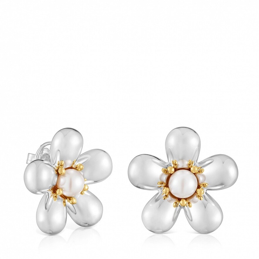 Серьги TOUS Daisy из серебра 925 пробы с покрытием Vermeil с цветочным мотивом и культивированным пресноводным жемчугом. Размер культивированного жемчуга: 7-7,5 мм. Размер серьги: 27 мм.