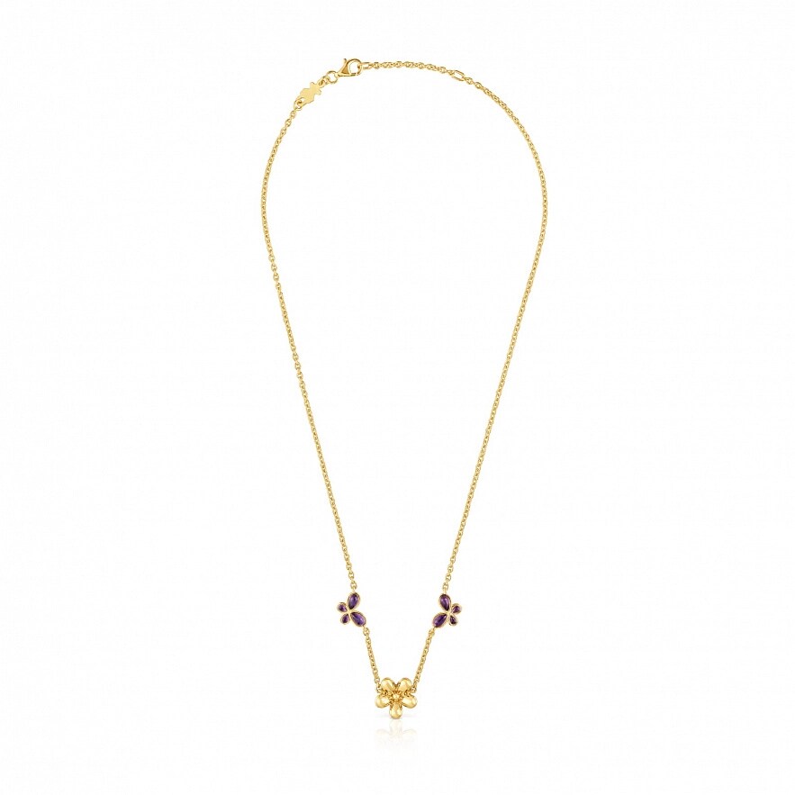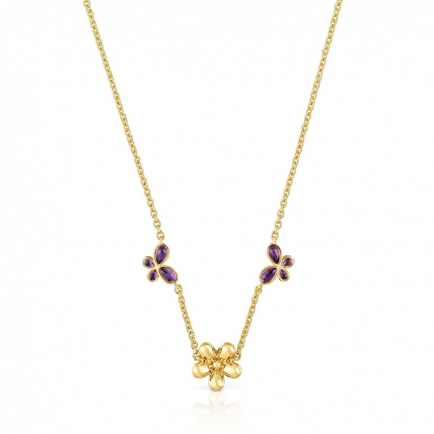 Колье TOUS Daisy из серебра 925 пробы с покрытием Vermeil с цветочным мотивом и аметистом грушевидной огранки. Длина колье: 45 см. Застежка-бабочка.