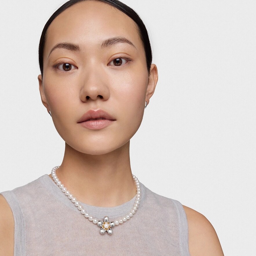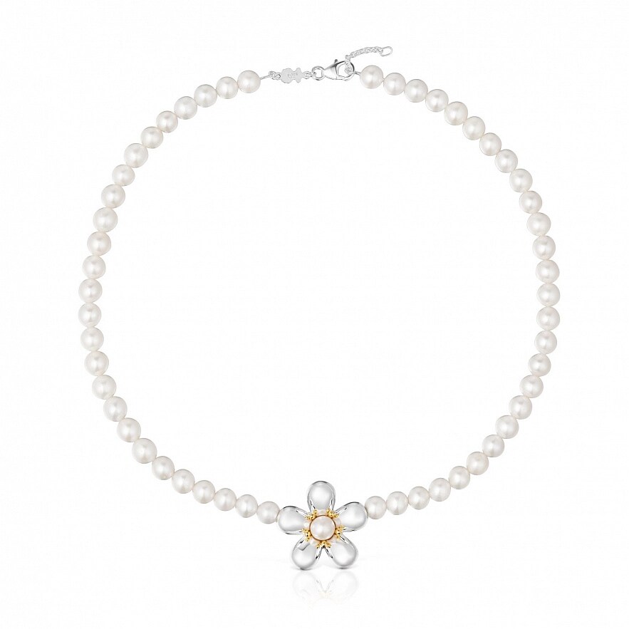 Колье TOUS Daisy из серебра 925 пробы с покрытием Vermeil с цветочным мотивом и культивируемым пресноводным жемчугом. Размер мотива: 26 мм. Длина колье: 45 см. Застежка-бабочка.