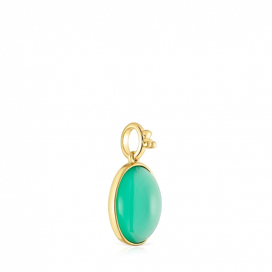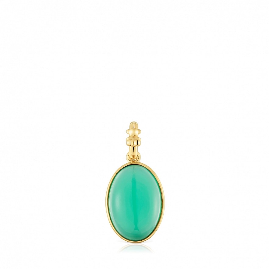 Кулон TOUS Medallions из серебра 925 пробы с покрытием Vermeil и зеленого халцедона, овальной формы с огранкой. Размер кулона: 13 мм. Это изделие не включает в себя цепочку.