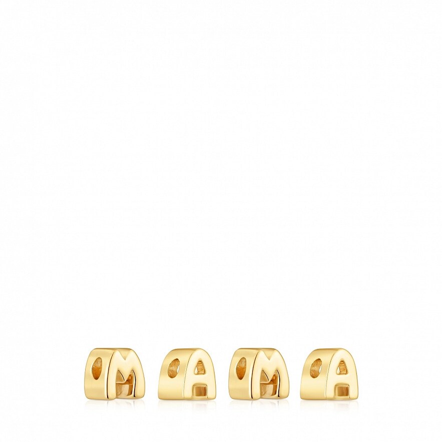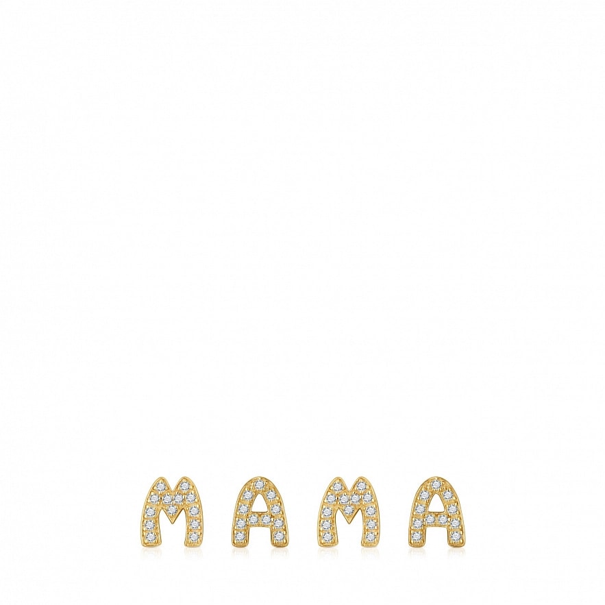 Набор кулонов TOUS Mama из серебра 925 пробы с покрытием Vermeil и бриллиантами 0,25 карата. Размер букв: 6 х 7 мм. Качество бриллиантов: H-I/SI-I. В комплект не входит цепочка.
