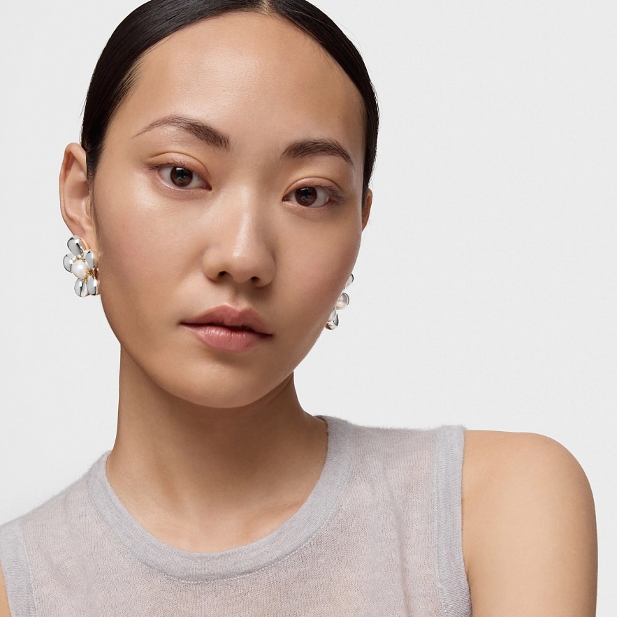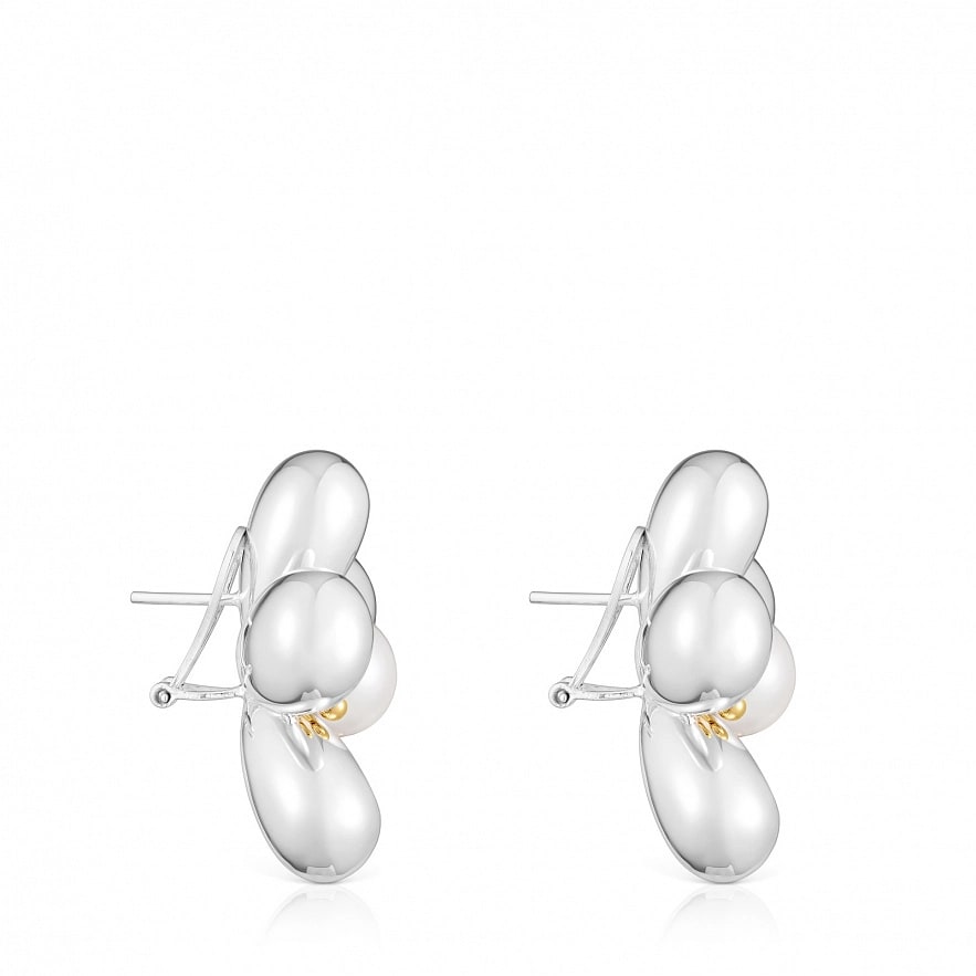 Серьги TOUS Daisy из серебра 925 пробы с покрытием Vermeil с цветочным мотивом и культивированным пресноводным жемчугом. Размер культивированного жемчуга: 10,5-11 мм. Размер серьги: 36 мм.