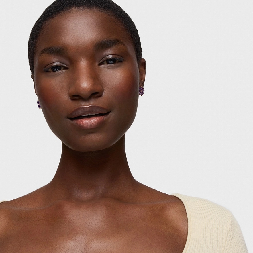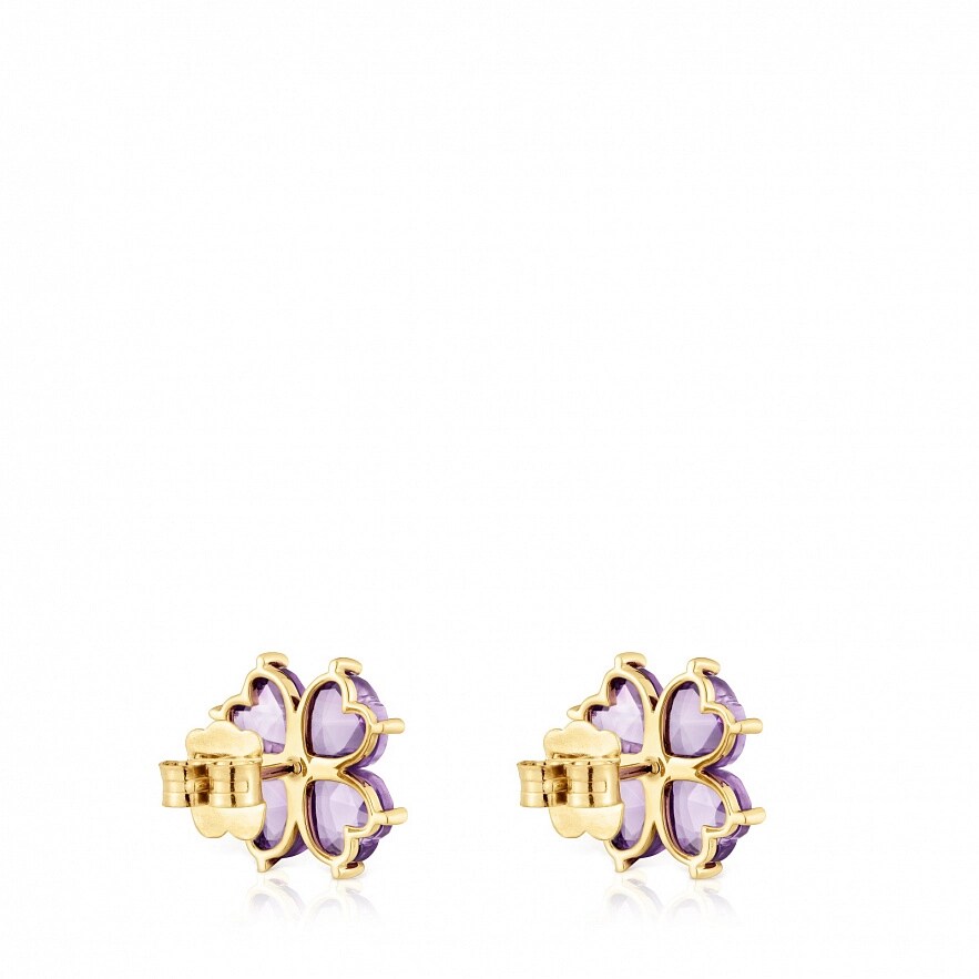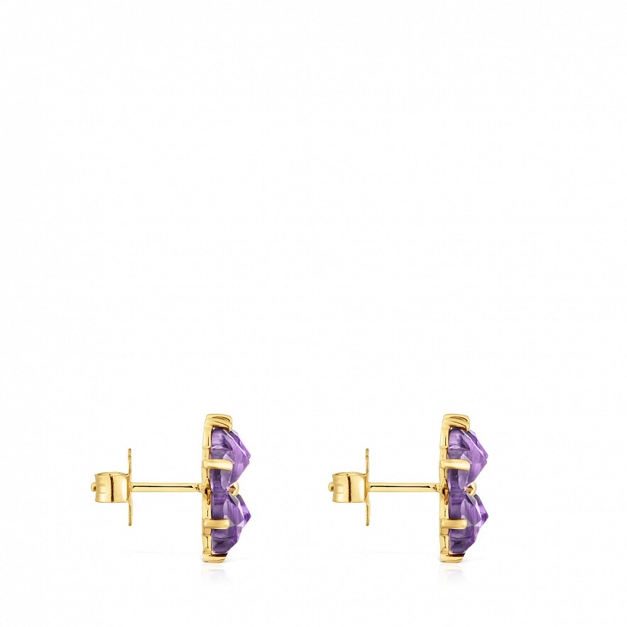 Серьги TOUS Daisy из желтого золота 18 карат, цветочный мотив и аметист в форме сердца. Размер сережек: 12 мм.