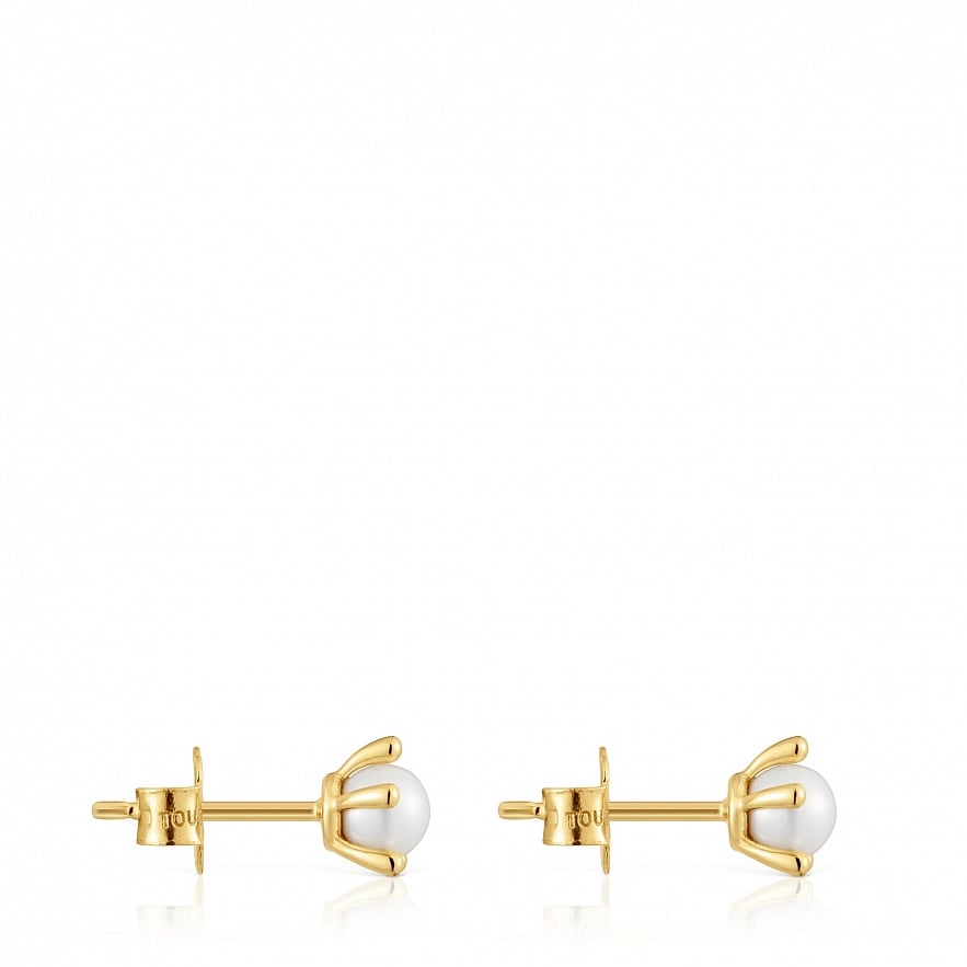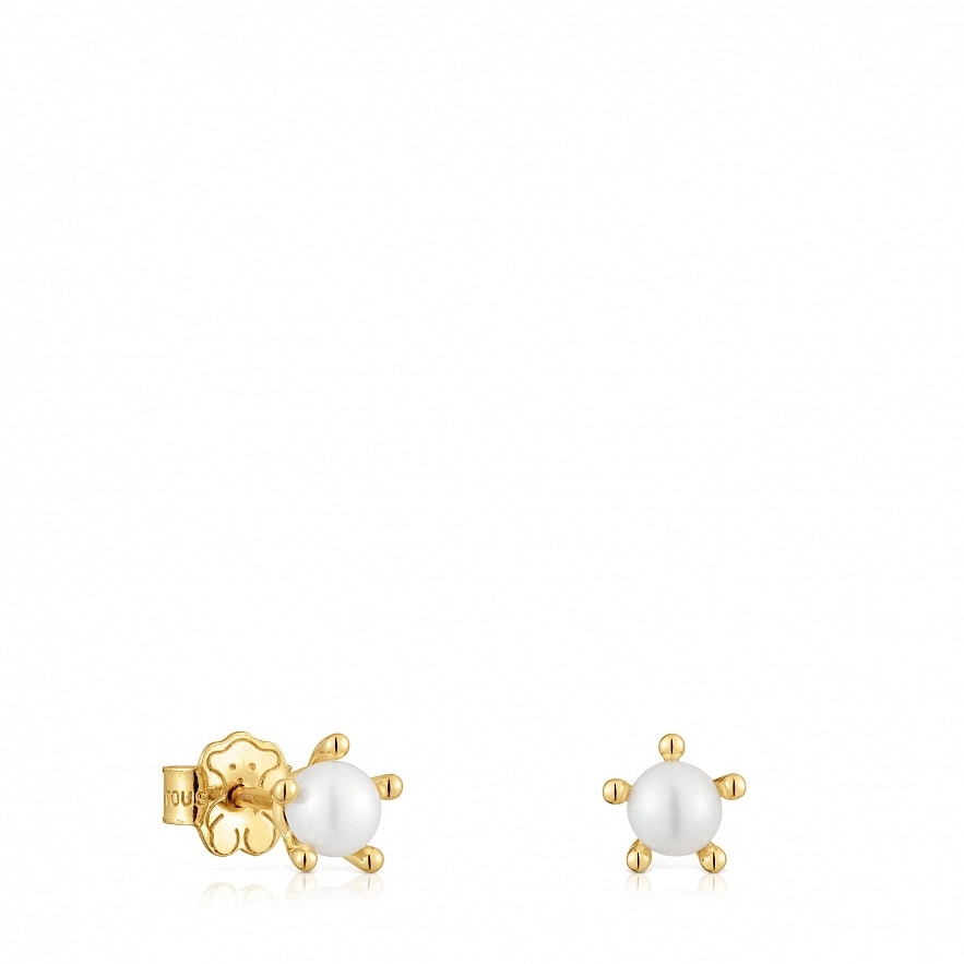 Серьги TOUS Garden из желтого золота 18 карат, цветочный мотив и культивируемые пресноводные жемчужины.Размер сережек: 4 мм.