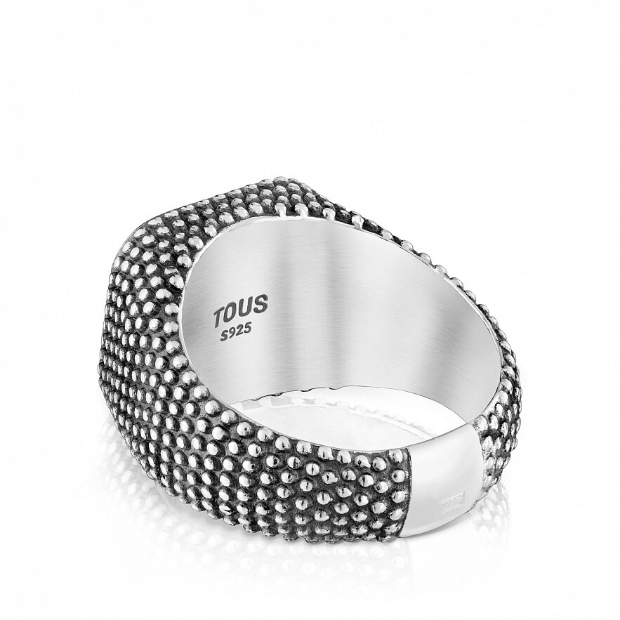 Кольцо TOUS Man из серебра 925 пробы с ограненным ониксом. Размер камня: 15 мм. Толщина кольца: 1,8 мм.