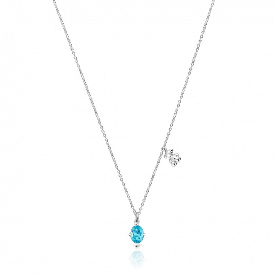 Колье TOUS Bold Bear LGG с мотивом мишки из серебра 925 пробы с ограненным синтетическим голубым сапфиром овальной огранки, выращенным в лаборатории. Размер драгоценного камня: 8 мм. Размер мишки: 7 мм. Общая длина колье: 50 см. Застежка карабин. Примечание: Изделие создано с использованием лабораторно выращенных драгоценных камней.