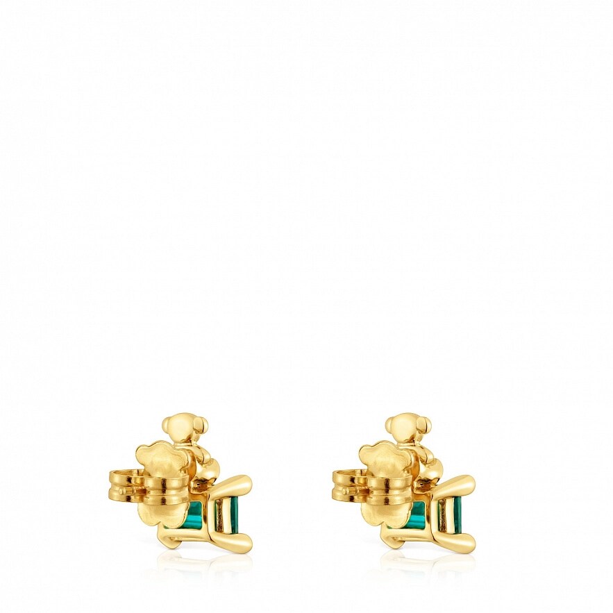 Серьги TOUS Bold Bear LGG из серебра 925 пробы с покрытием Vermeil с мотивом мишки и ограненным восьмигранным синтетическим зеленым изумрудом. Размер серьги: 14 мм. Примечание: Изделие создано с использованием лабораторно выращенных драгоценных камней.